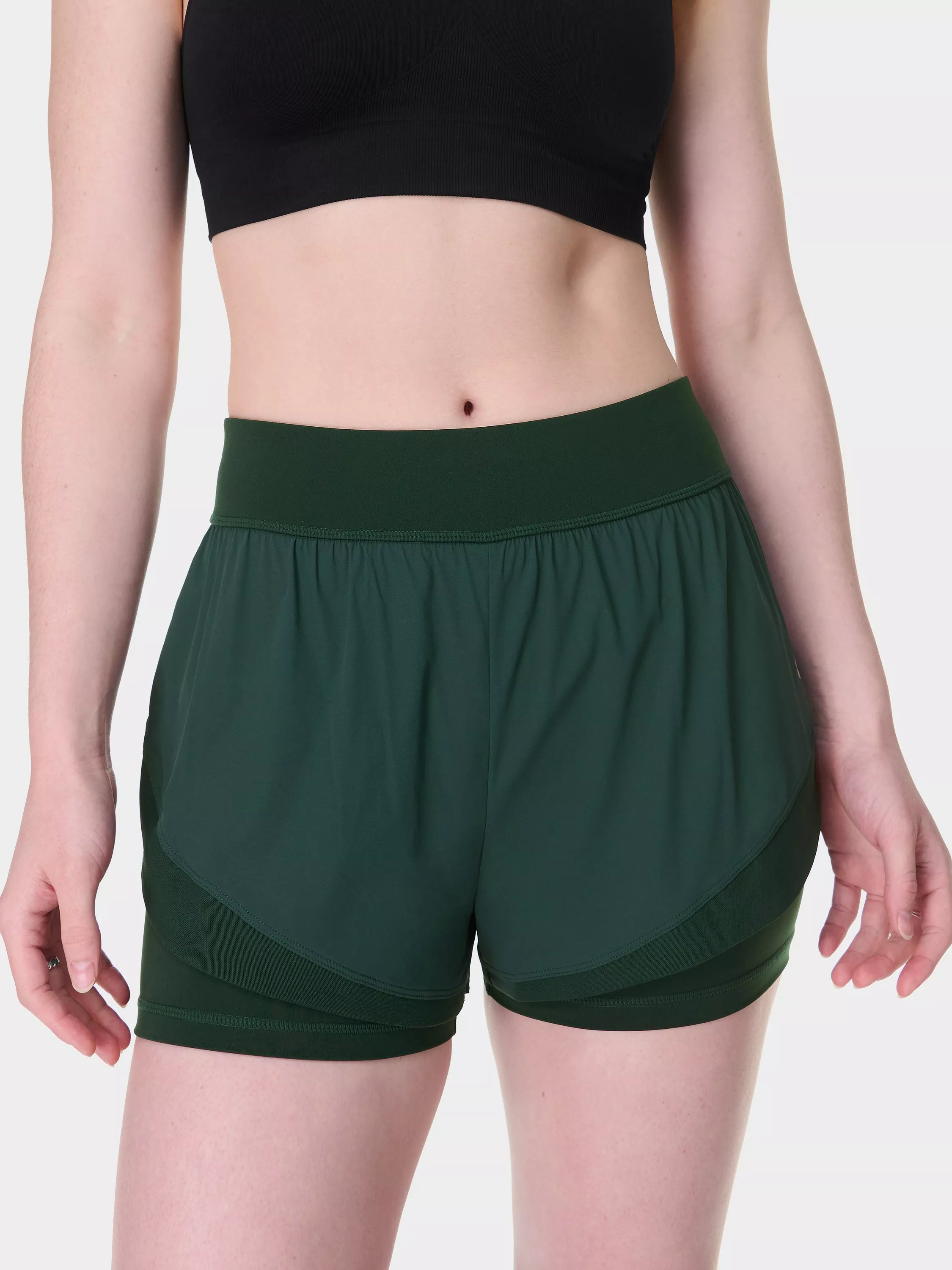 Sweaty Betty's two-in-one running shorts. Made from quick-drying, sweat-wicking fabric, the outer layer comes with mesh detailing and a high hem for freedom of movement. Inner Power Shorts with silicone grippers and phone pocket.