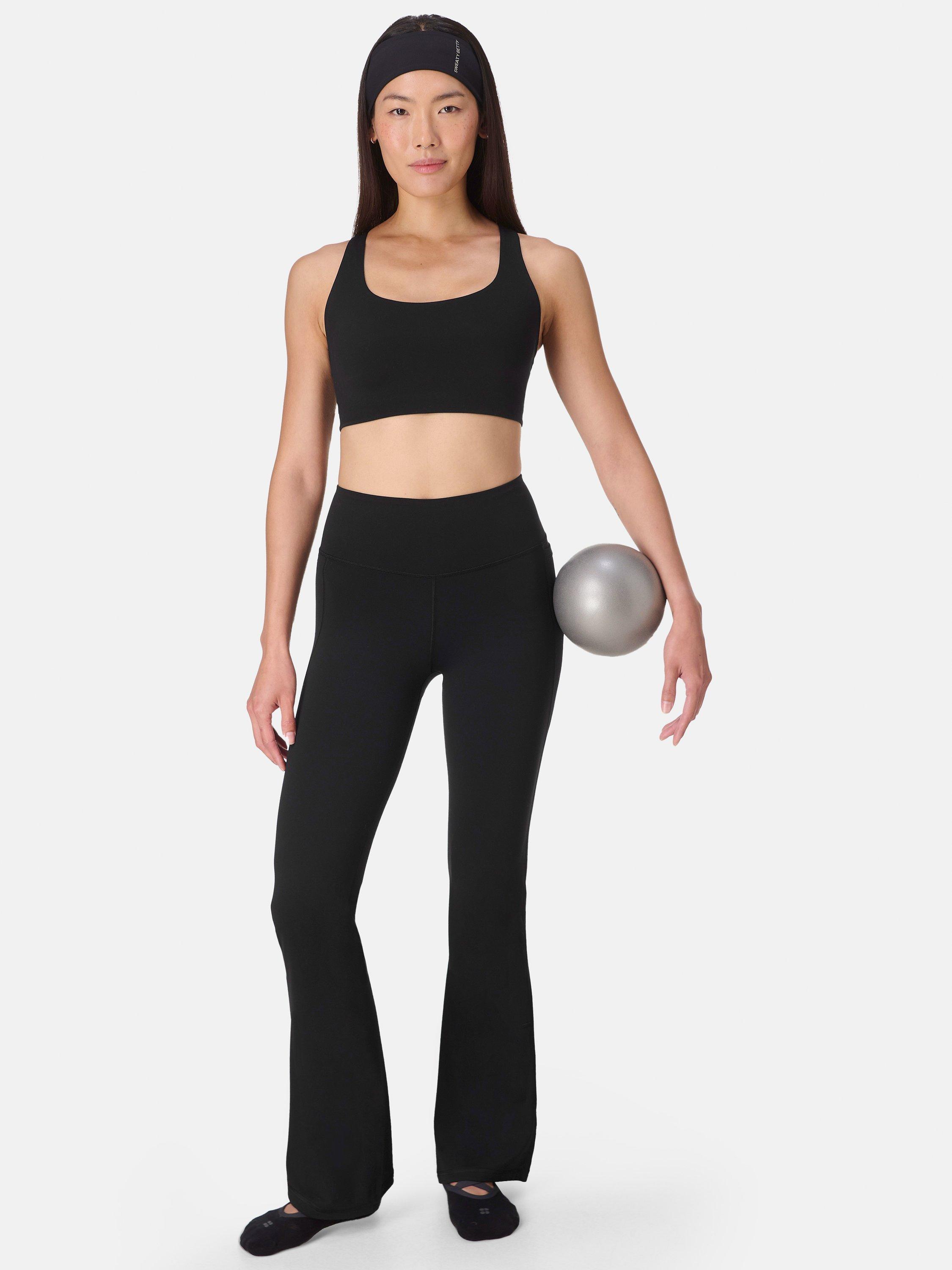 Incredibly soft, streamlined performance flares for yoga, Pilates and barre. Fabric is quick-drying and sweat-wicking with gentle compression and a supple, second-skin softness that feels like nothing else. Subtly curved high waist with a supportive fit that hugs your body and flexes as you flow. A pared-back design with no visible seams and a smooth waistband for comfort on the mat.