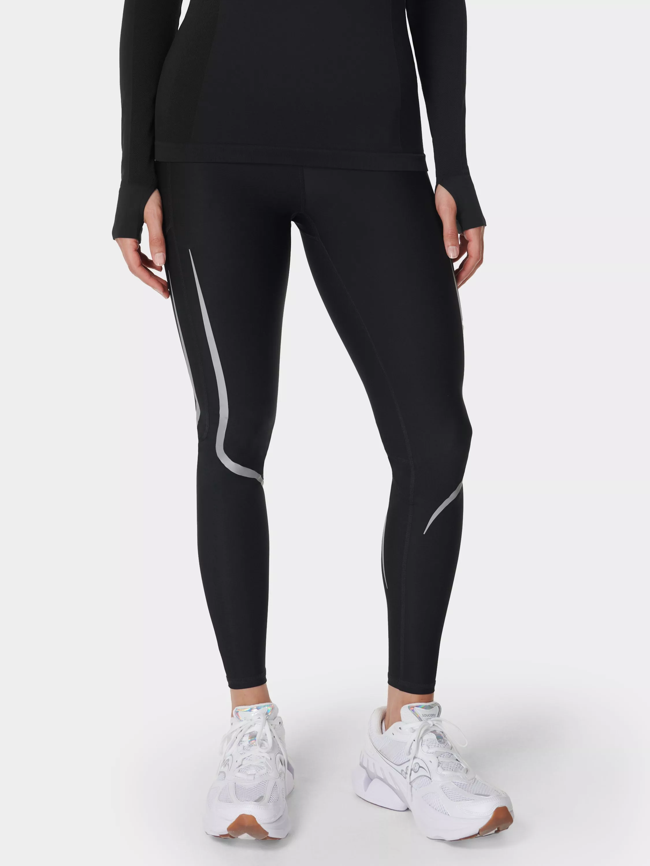 A pair of new-and-improved bum-sculpting run leggings. The ultra-lightweight Italian fabric is quick-drying for your sweatiest sprints. High-waisted design with an adjustable waist and updated seamlines. Back zip pocket, two side slip pockets and redesigned reflective details. Warp-knitted fabric offers compression technology, UV40+ protection and improved opacity.