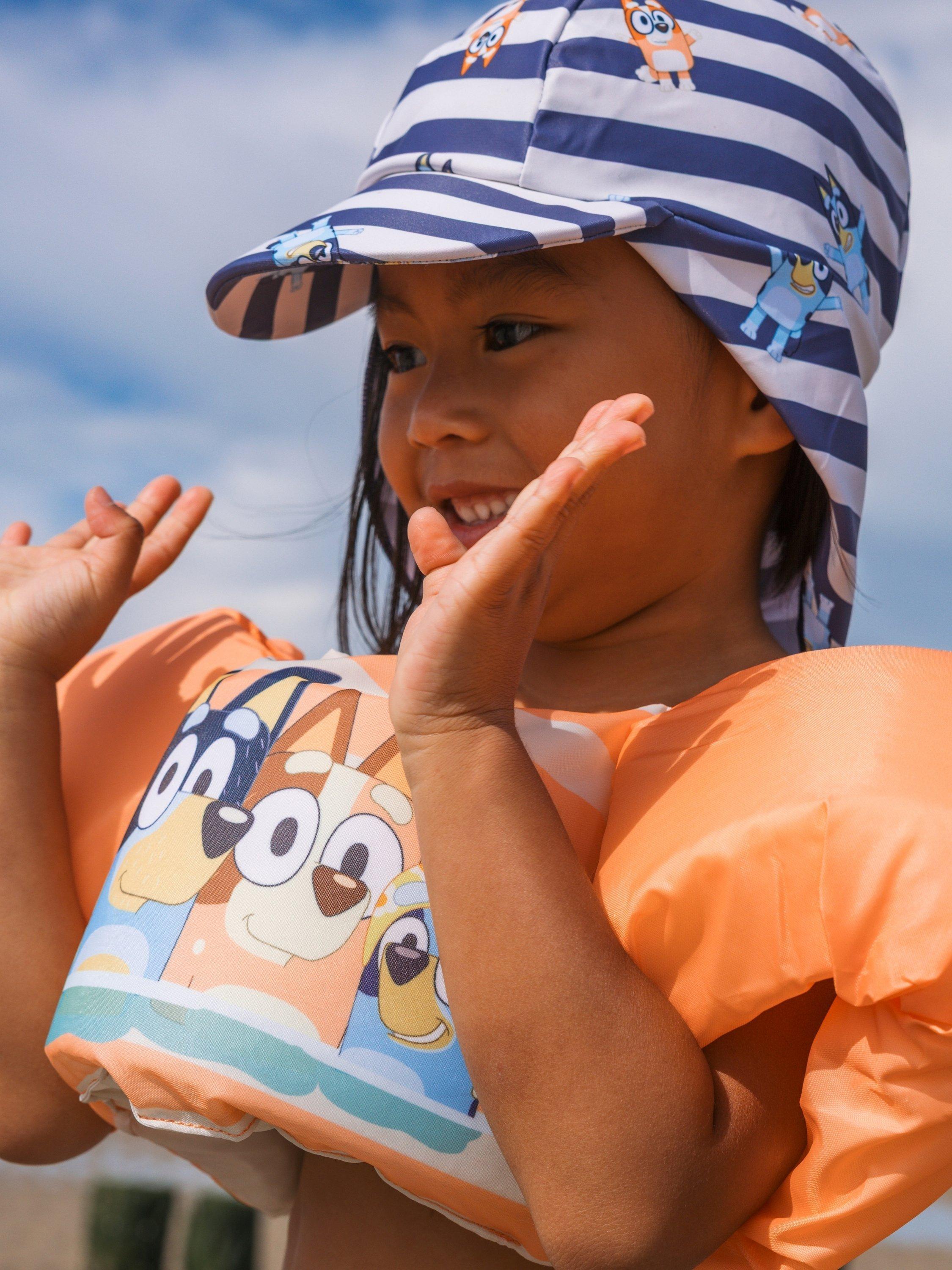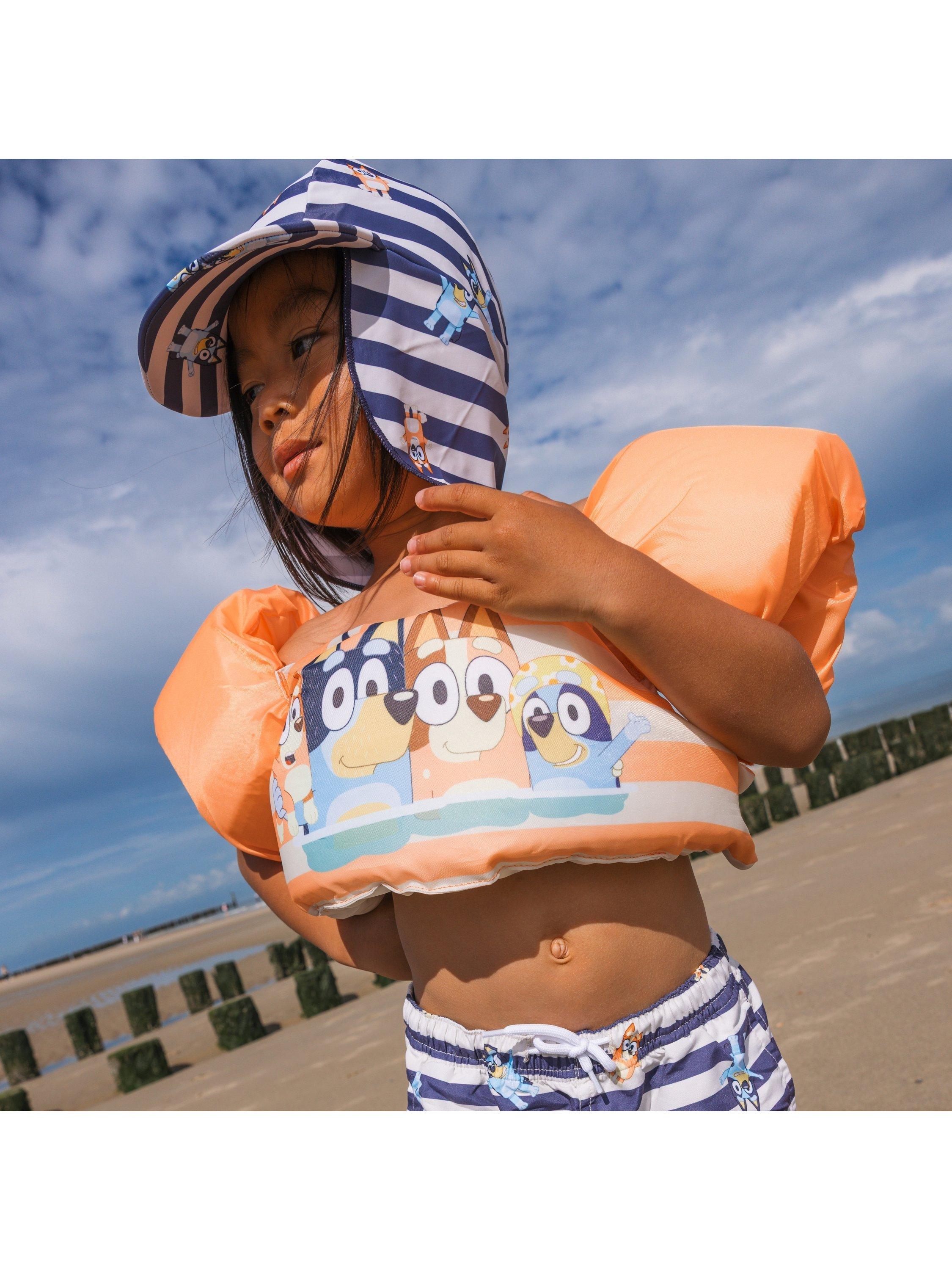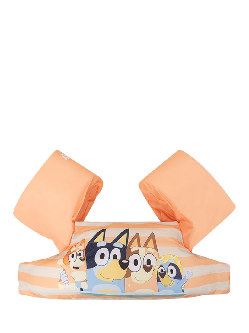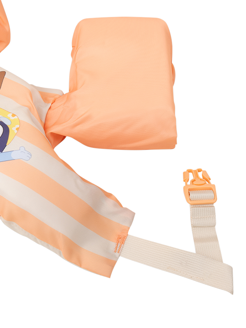 A playful and safe kids’ Puddle Jumper with a cheerful orange Bluey design. Made from a comfy, quick-dry material and giving a secure fit for carefree water fun.