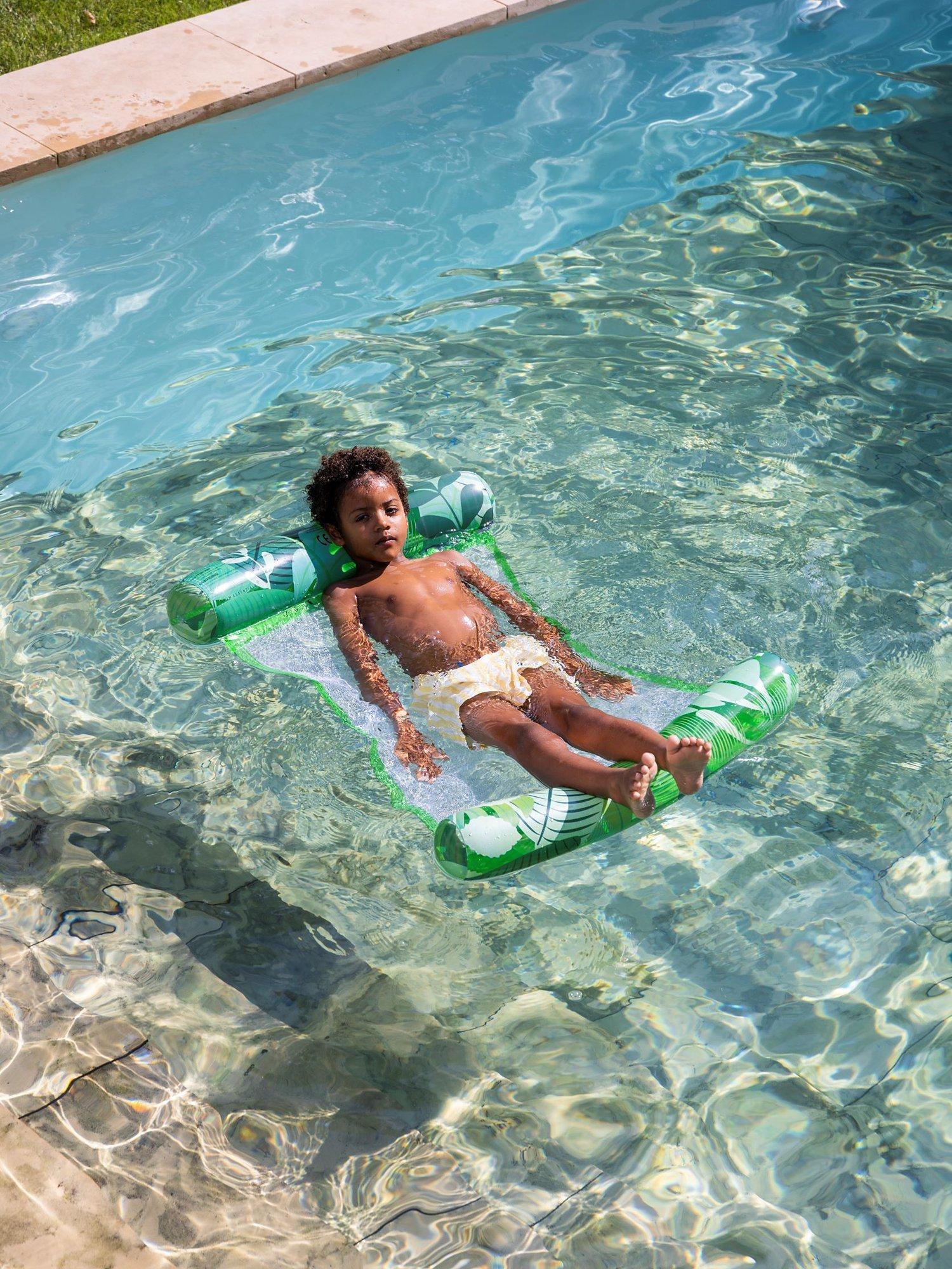 Chill out in the pool with this inflatable water hammock. The tropical green print complements the summer vibe letting you float your way to relaxation.