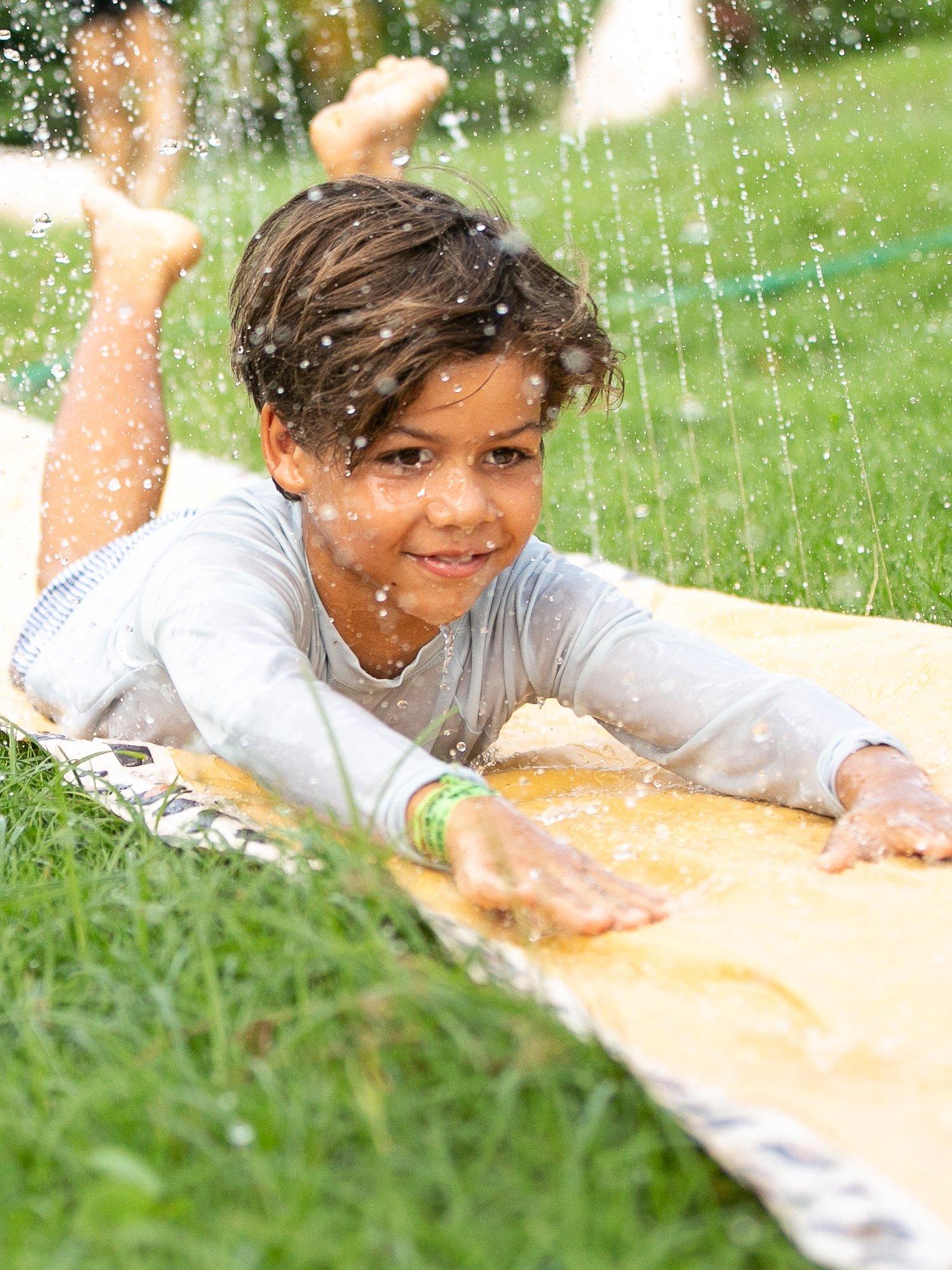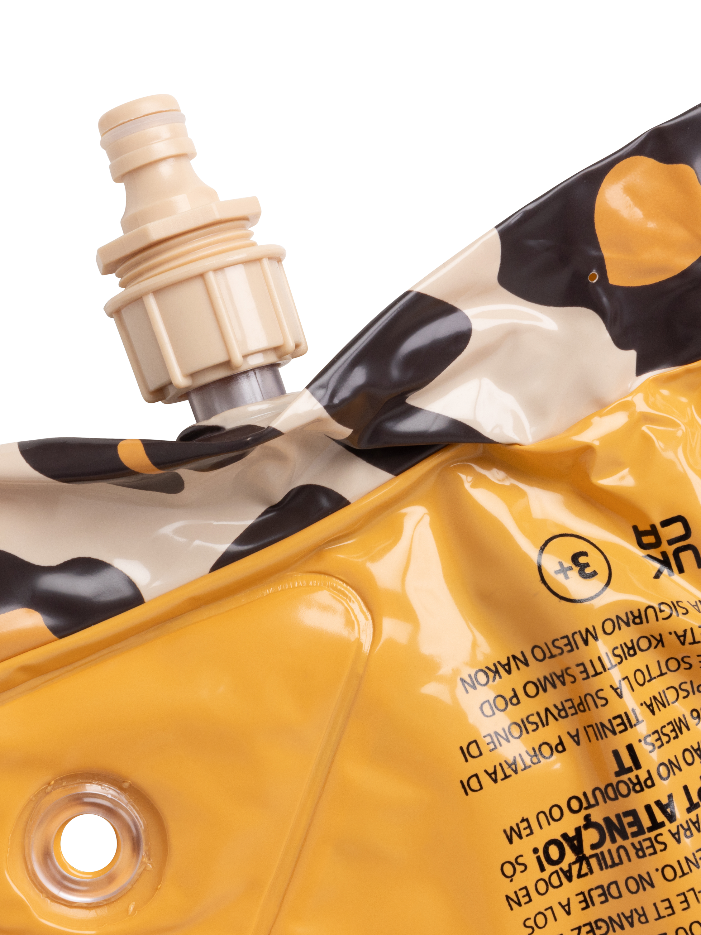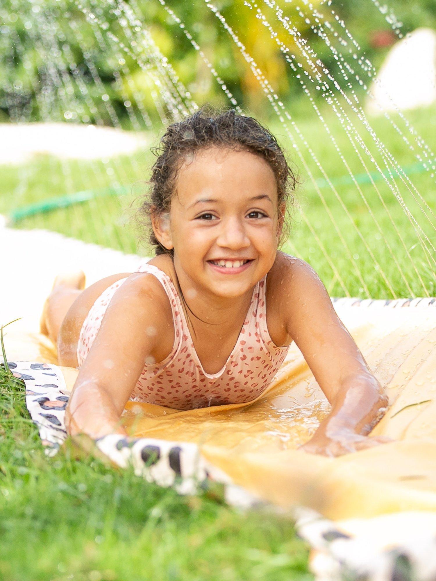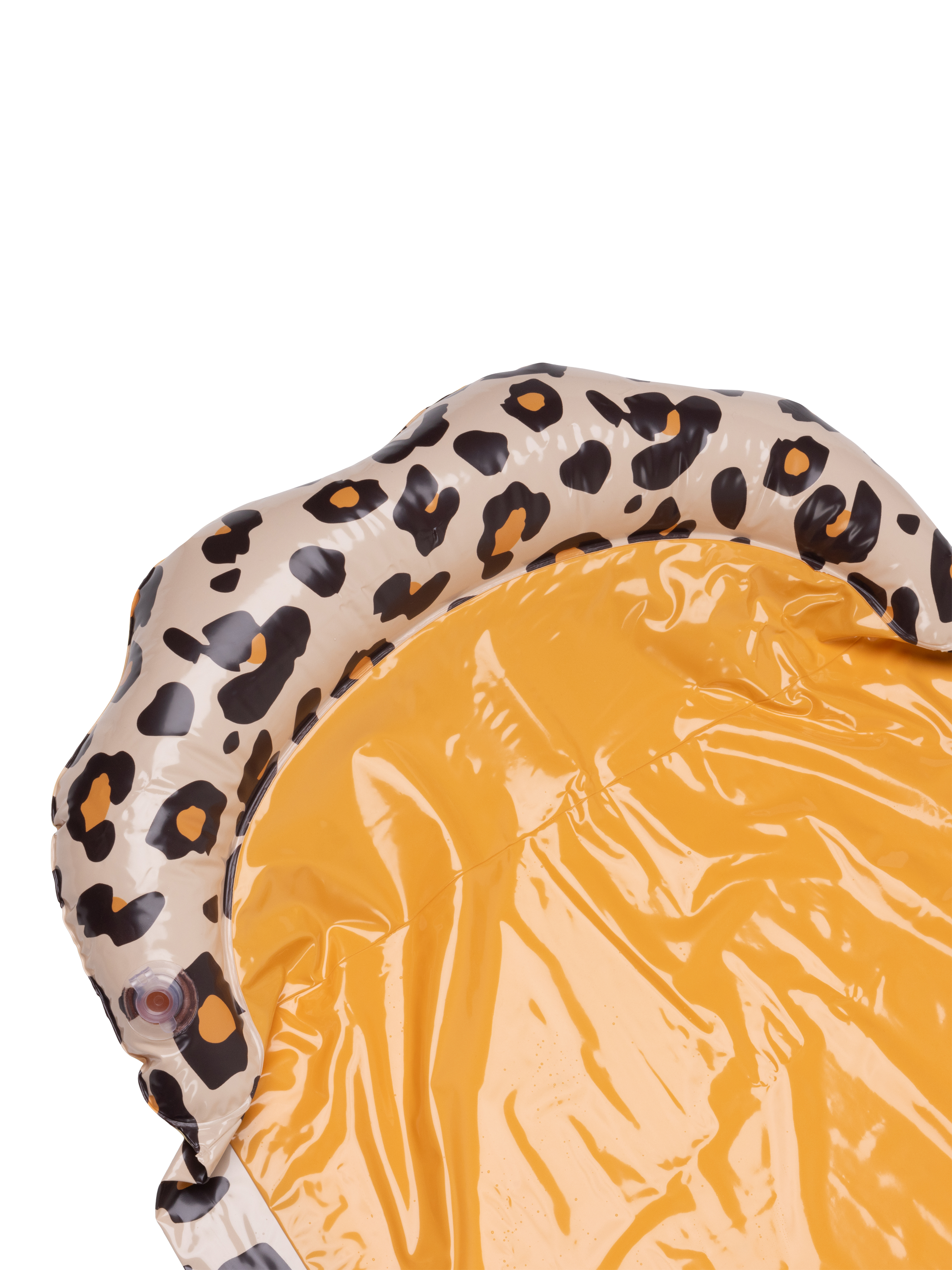 Enjoy fun and refreshment all summer long with this leopard print water slide. It can be connected to a garden hose letting the inflatable edge spray streams of water, allowing your kids to play underneath and cool off during those hot summer days.This water slide should be used under adult supervision.