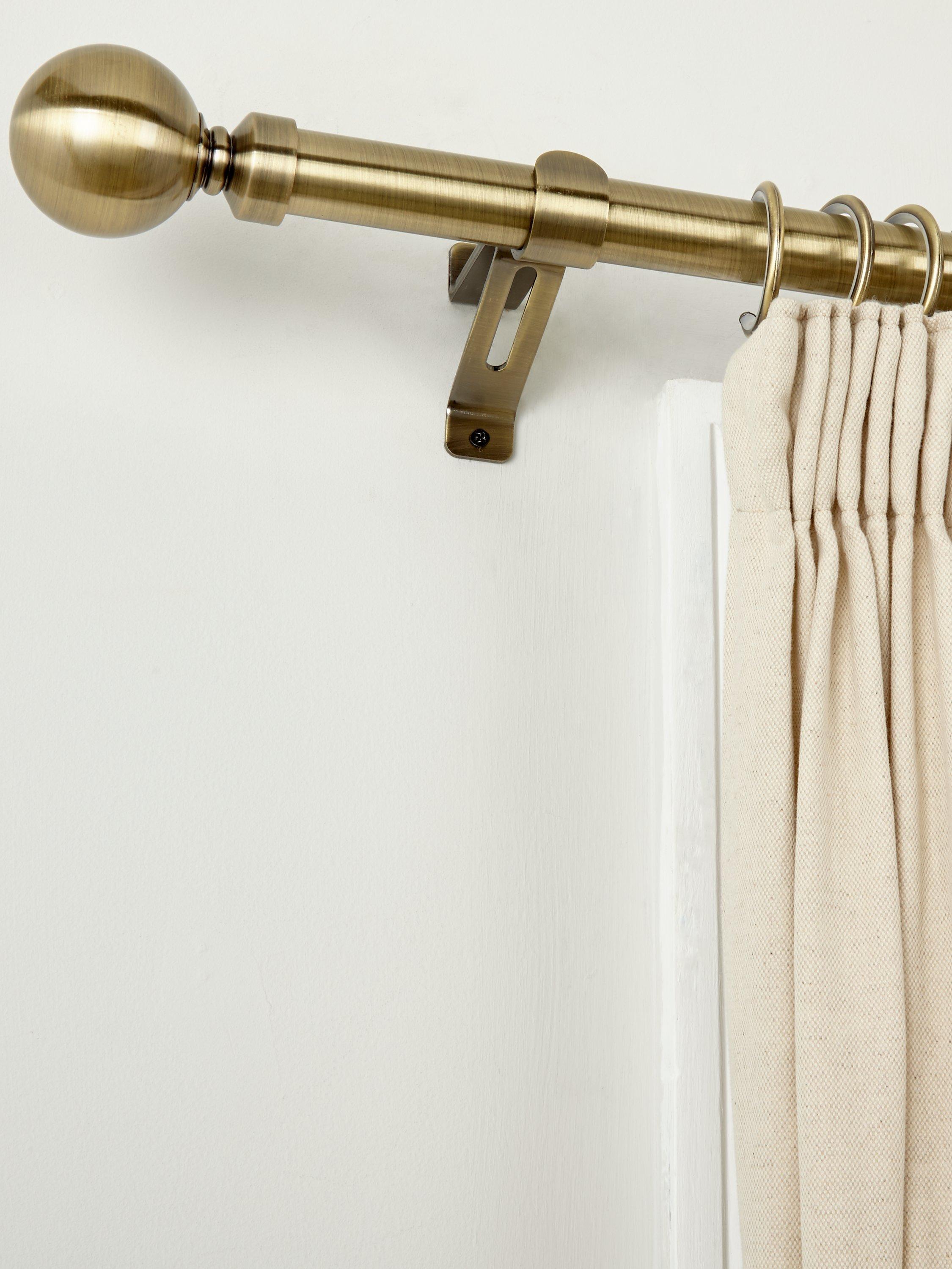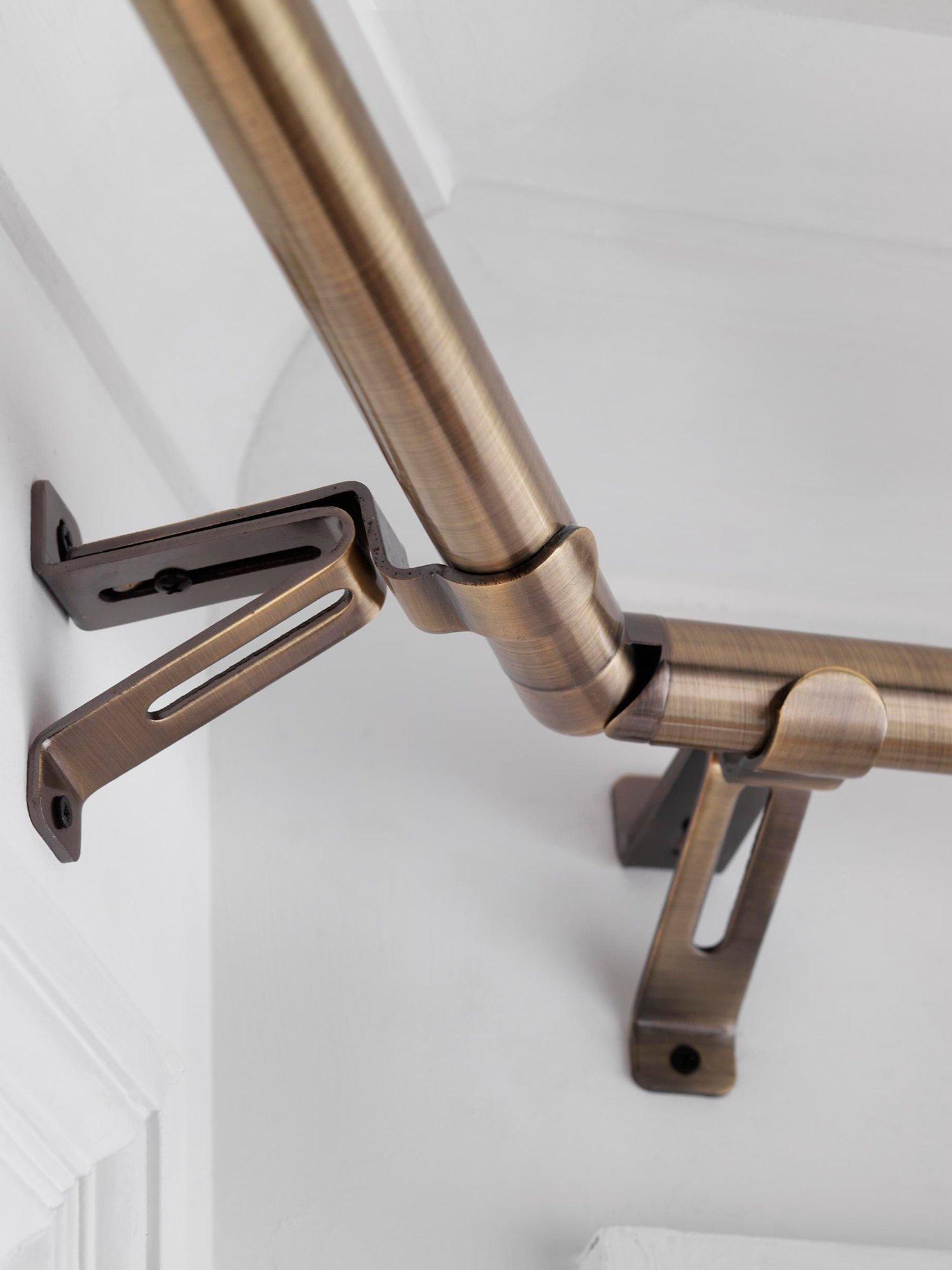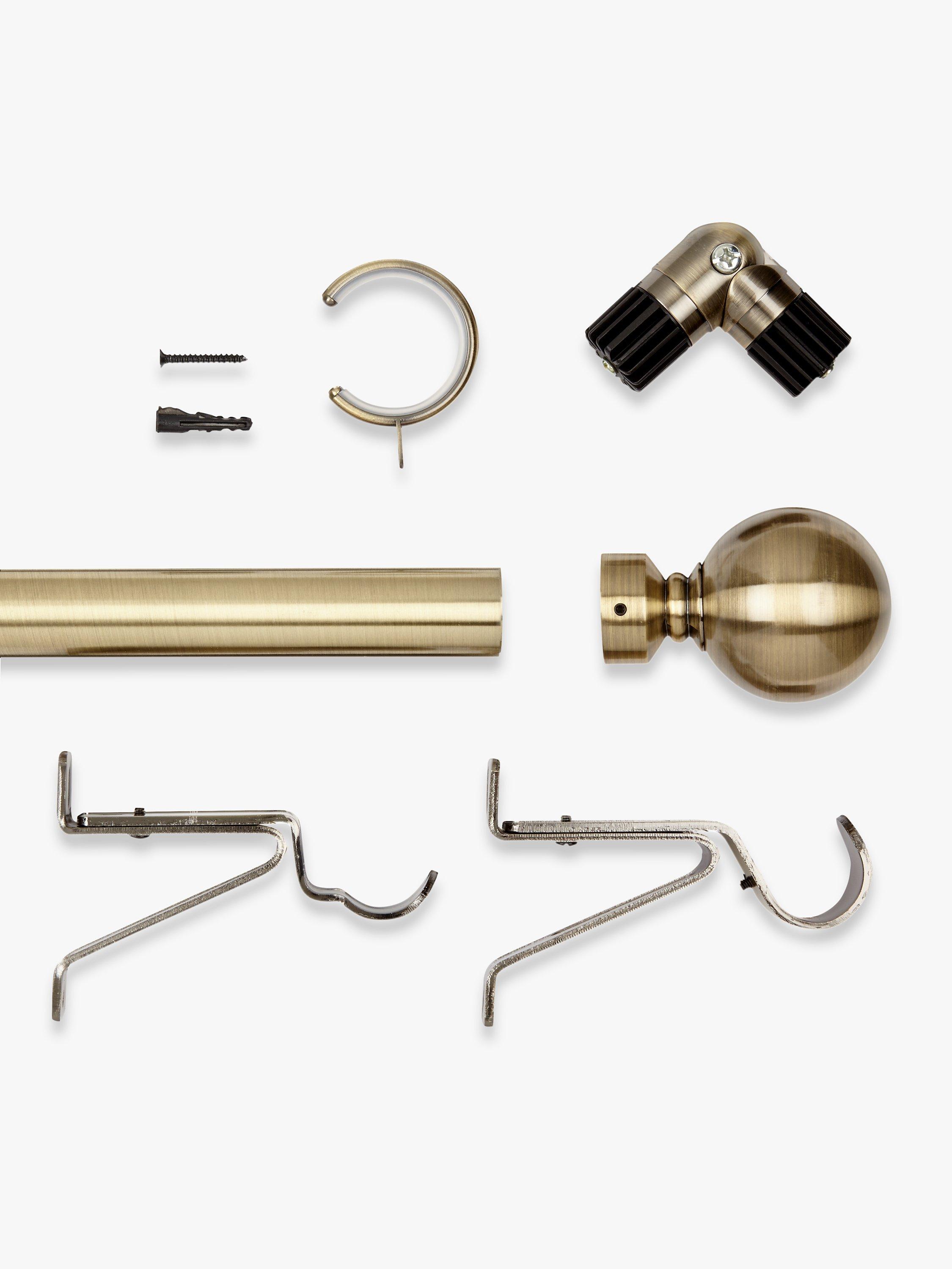 The perfect solution for 2 corner bay windows, this antique brass kit comes with ball end finials. All curtain poles come complete with all fixtures and fittings, including finials and brackets.