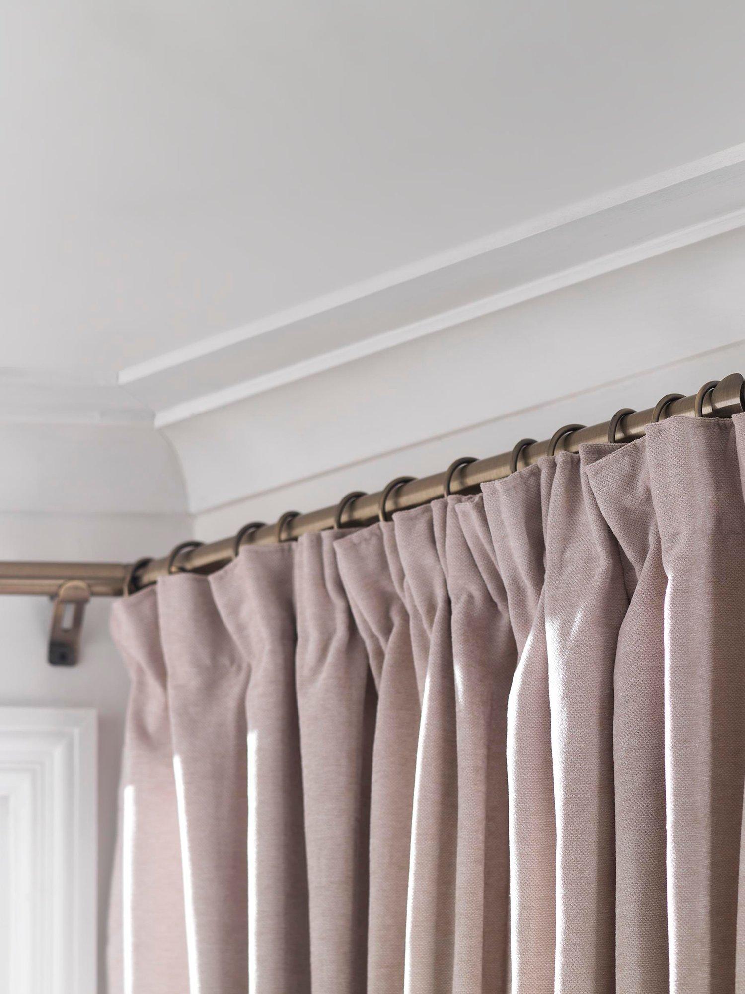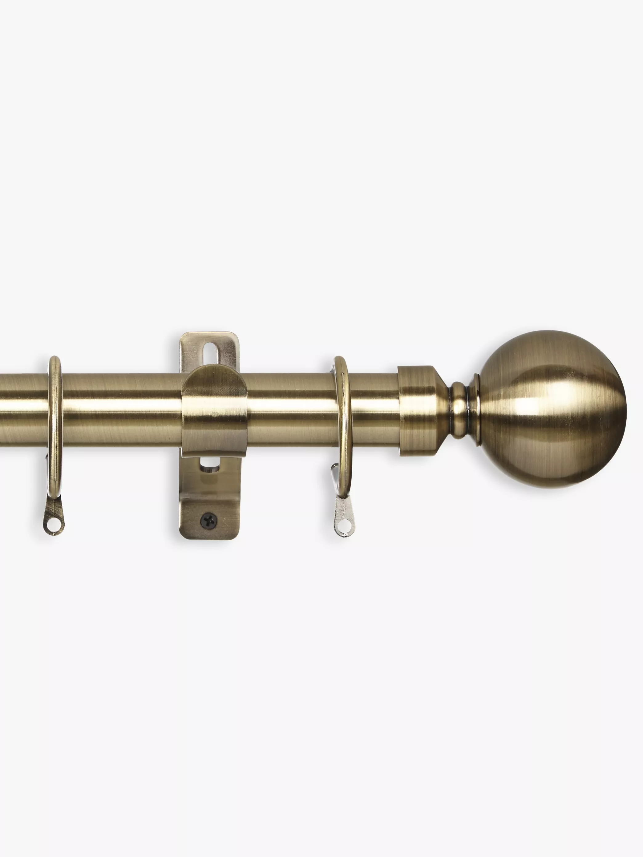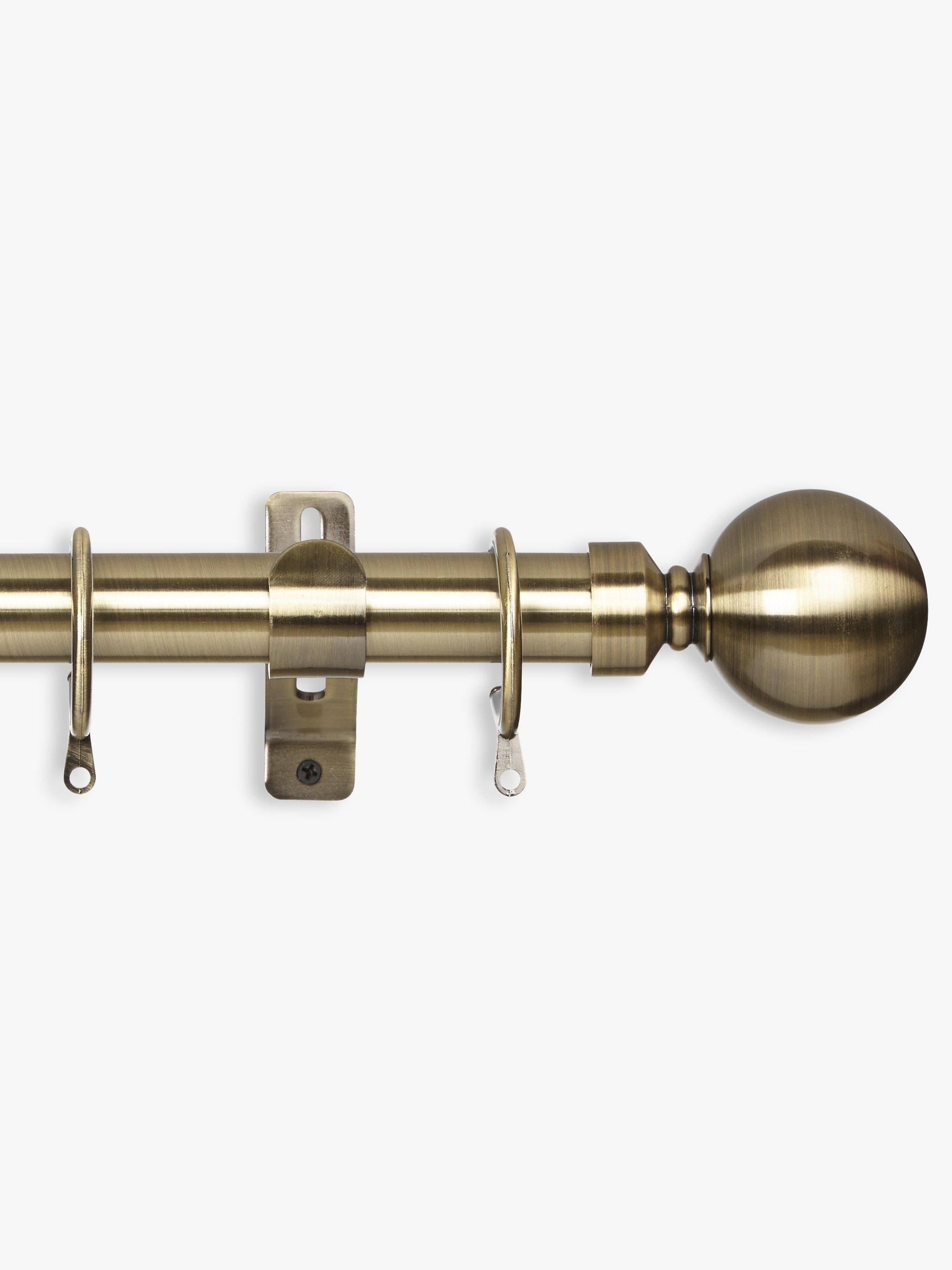 The perfect solution for 2 corner bay windows, this antique brass kit comes with ball end finials. All curtain poles come complete with all fixtures and fittings, including finials and brackets.