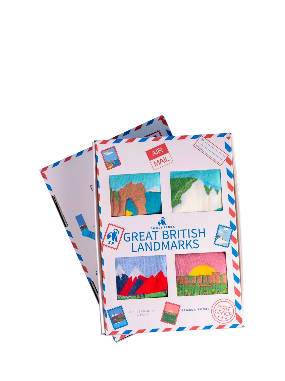 Swole PandaGreat British Landmarks Bamboo Socks Gift Box, Pack of 4, Multi