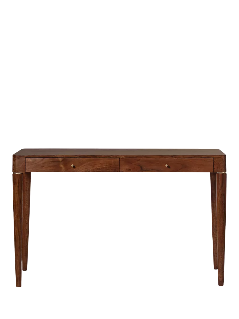 A pair of drawers punctuated by a single brass handle provide plenty of storage, whilst the generous expanse of timber proves the perfect table top from which to work.