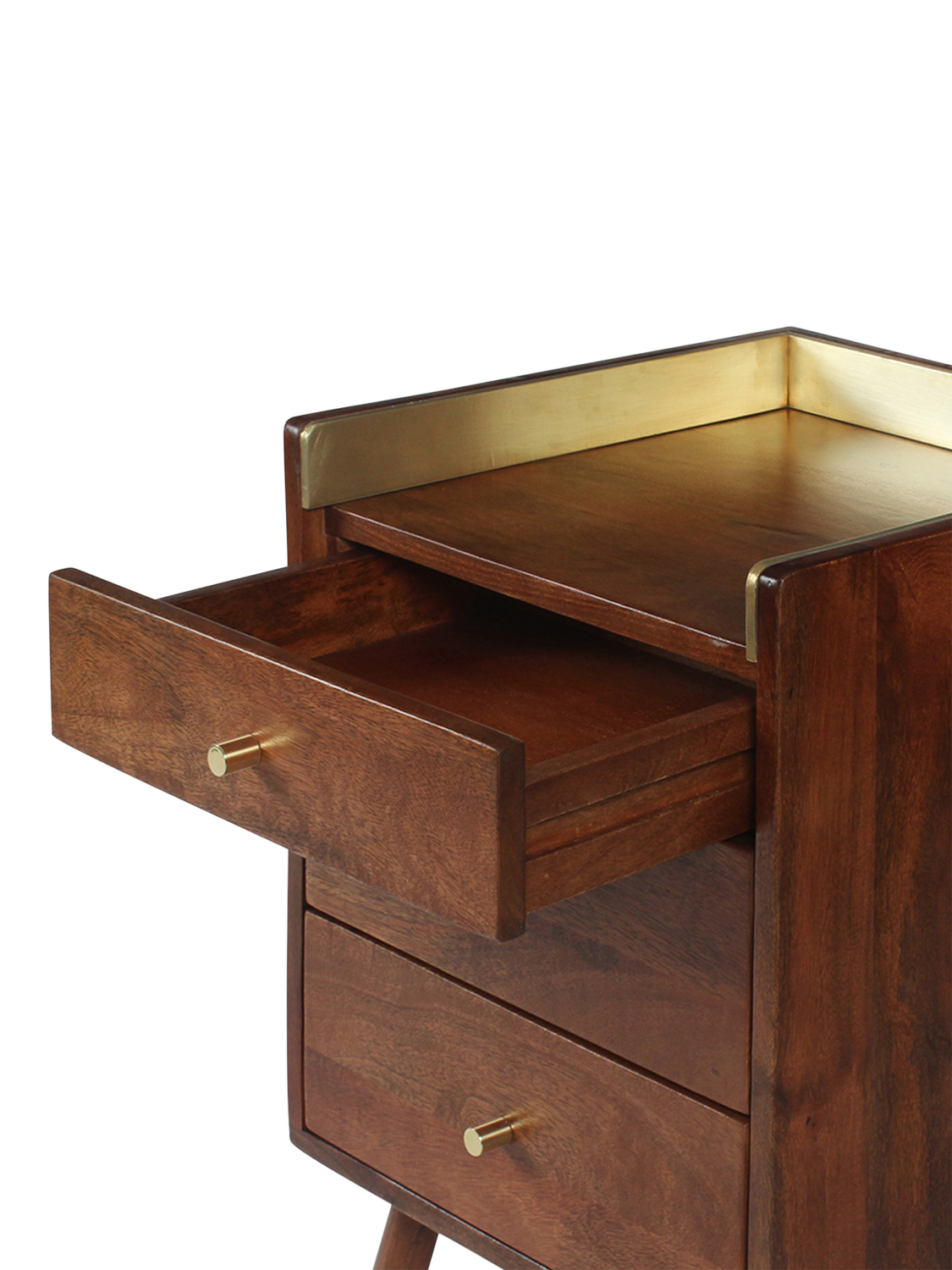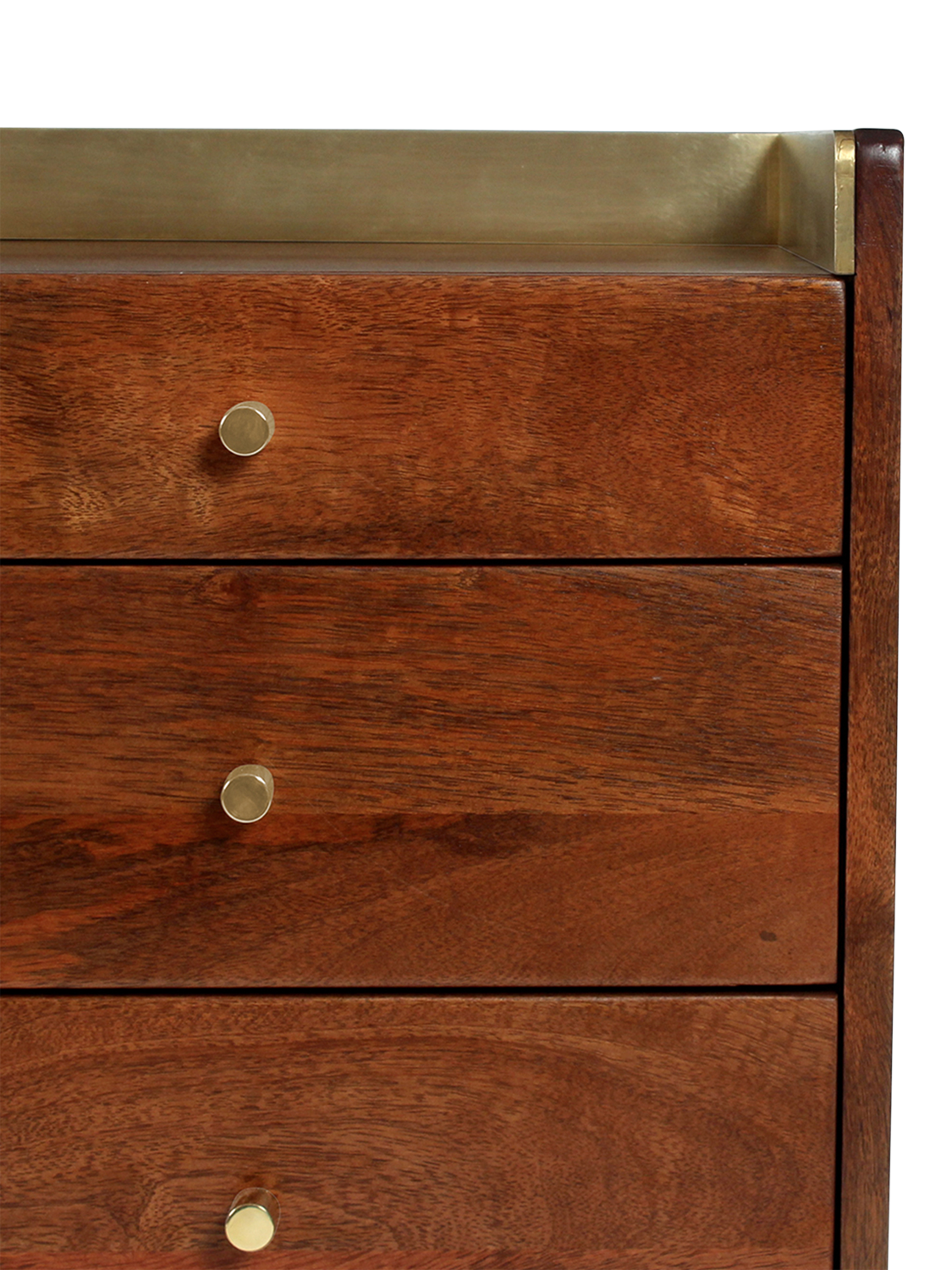 - Mango wood body, drawers and legs, engineered upstand, back panel and drawer bottoms, solid brass handles