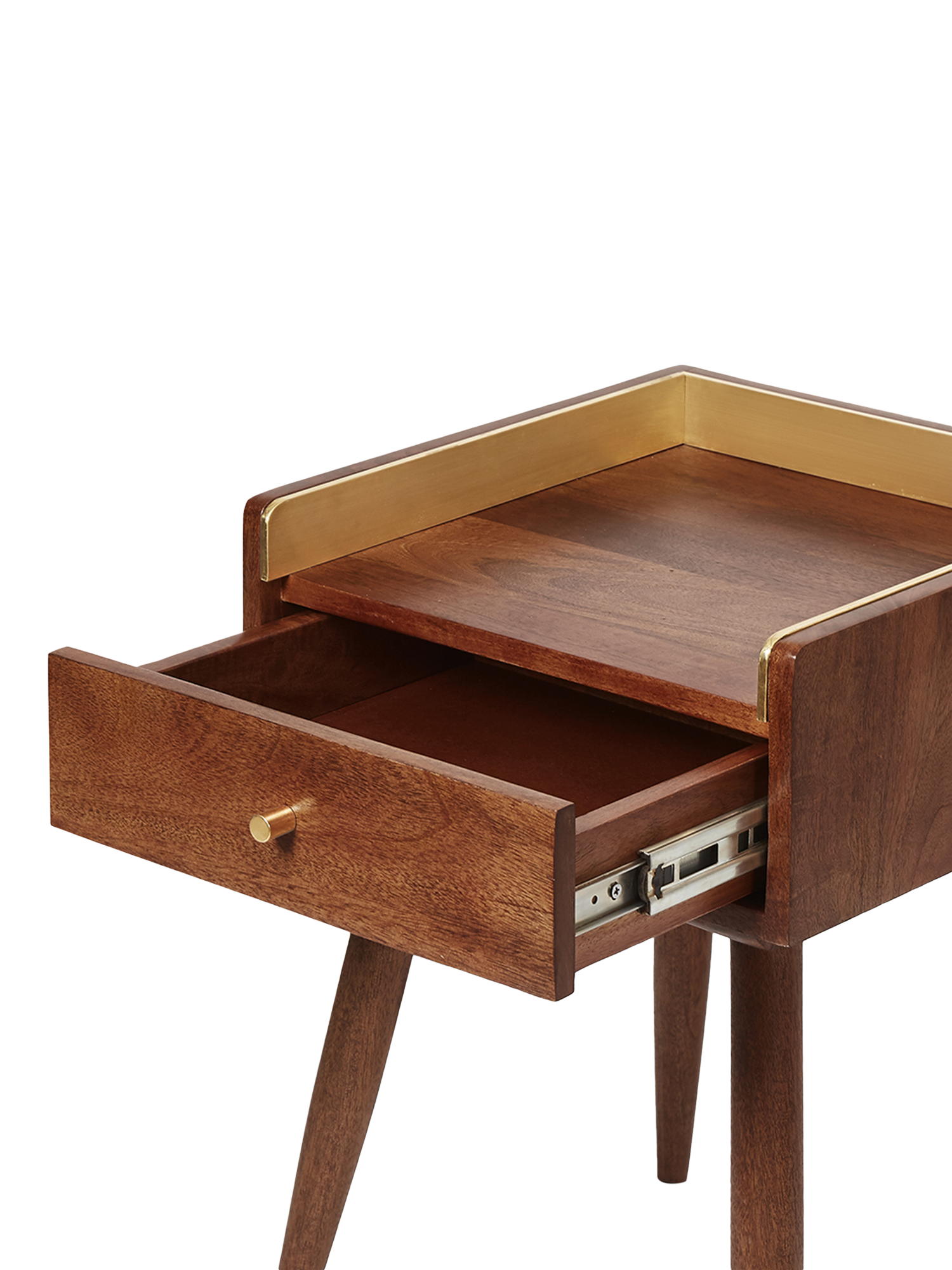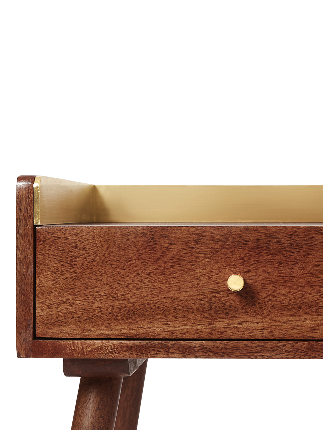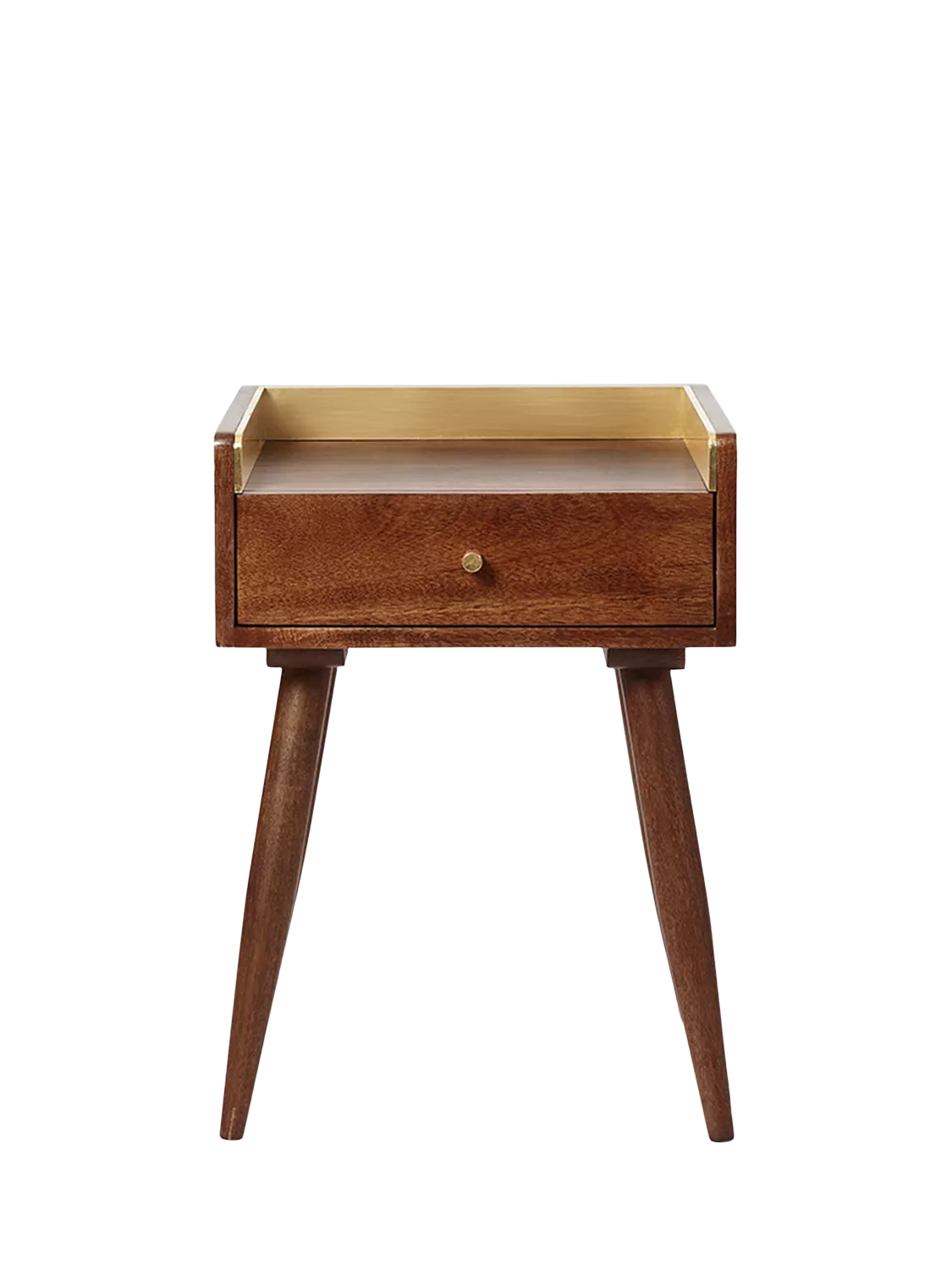 The moment we saw the Fresco, we knew we'd found "the one". It's cleverly characterised by its brassy upstand, a tiny brassy handle and wholesome, tapered legs. A handy drawer and ample shelf space make their mark alongside a perfectly blended Mid-Century form and Scandi simplicity.