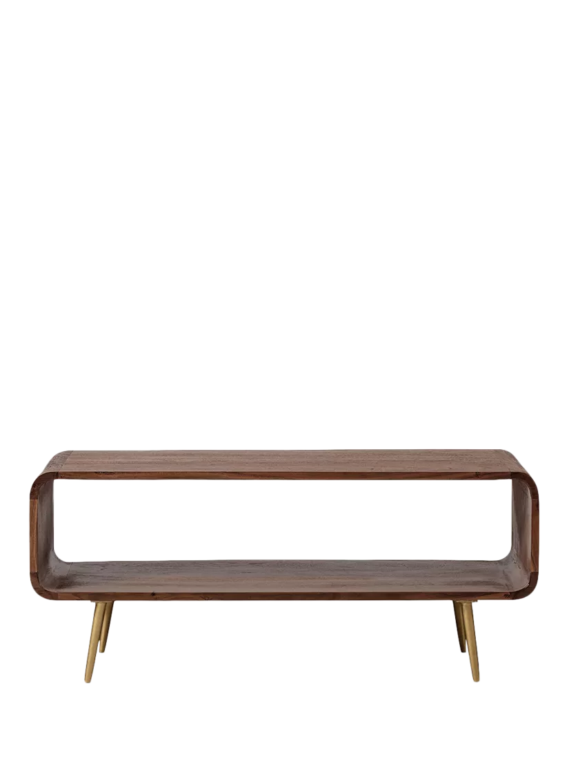A continuous loop of timber is combined with sleek tapered legs in a classic Swoon design with luxury brass finishings.
