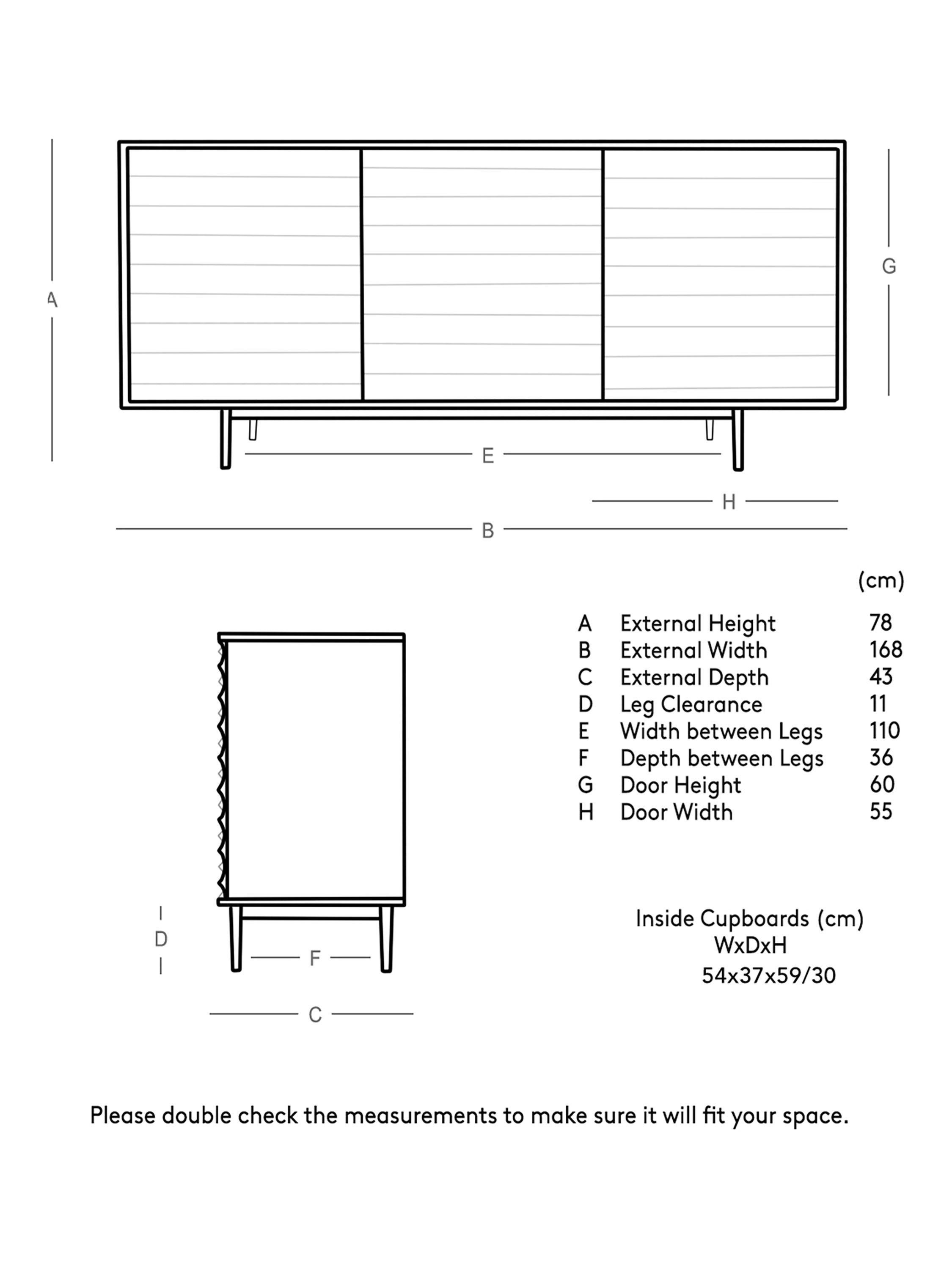 - H77.5cm x W168cm x D42.5cm