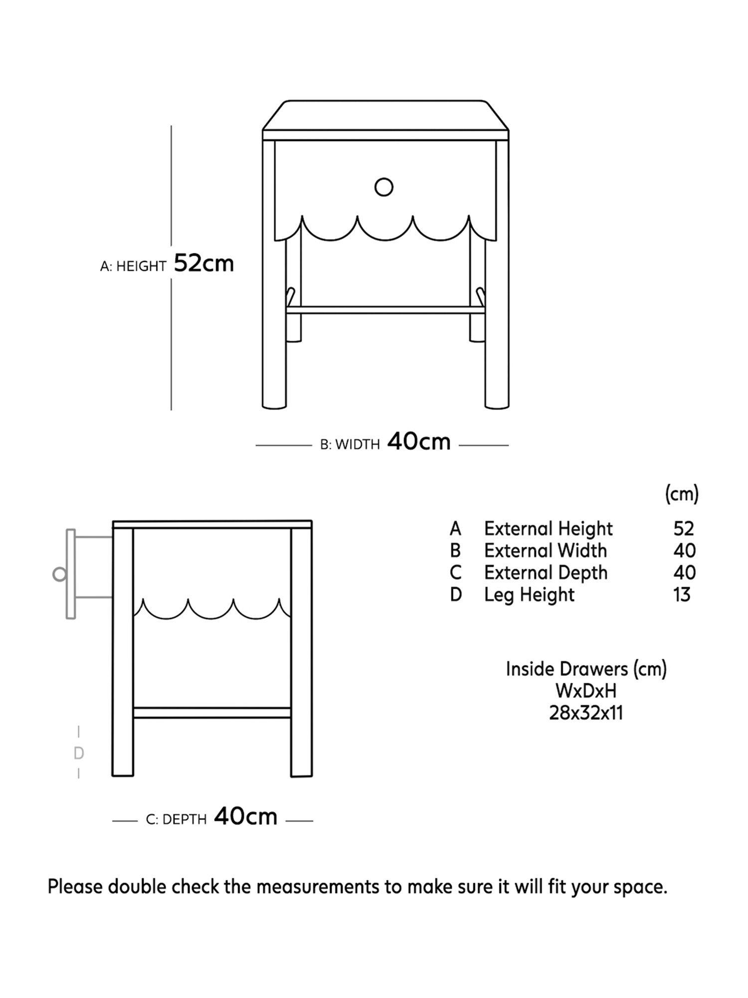 - H52cm x W40cm x D40cm