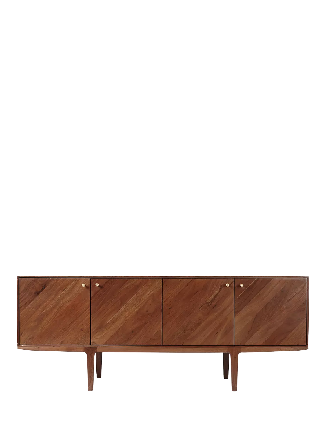 Poised, elegantly shaped legs guarantee this piece holds a sleek, low profile whilst keeping an affable character. The angled woodgrain, brass pull handles and softened edges add contemporary zeal to the Noah, ensuring enduring affection for this sideboard.