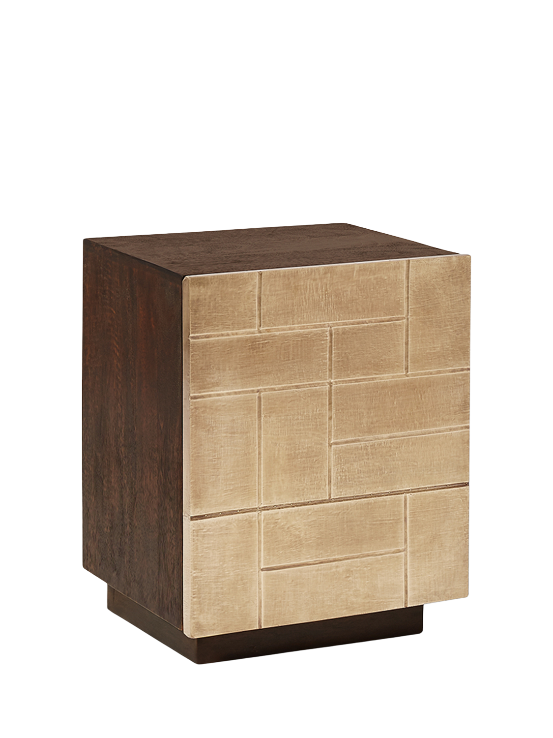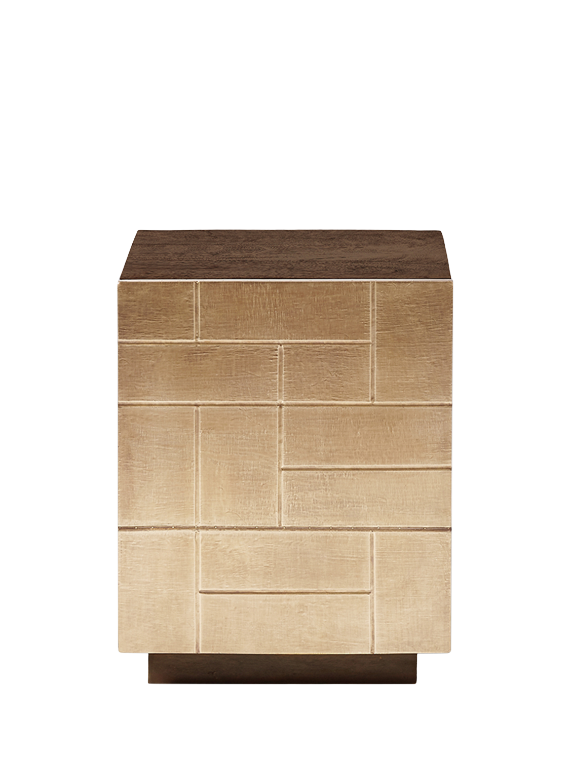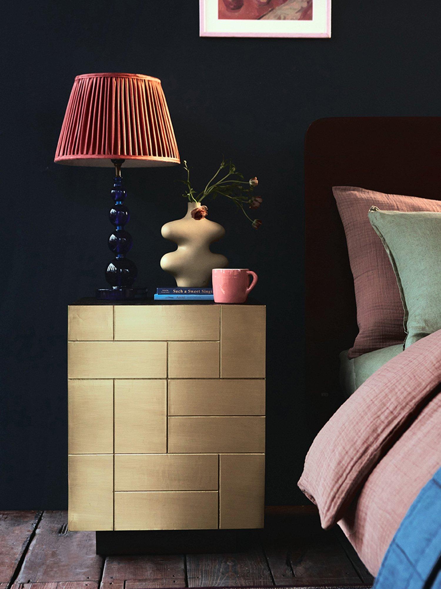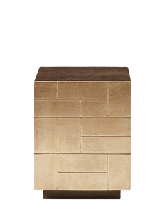 A truly unique design, the Piet is a bedside made to dazzle with a brass foil-cladded front that is scored by hand with a geometric pattern for a bold and luxurious storage piece.