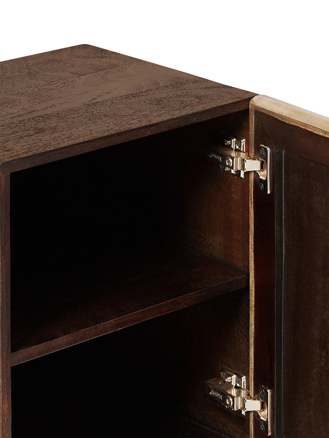 - Mango wood frame, engineered back, brass foil cladding
