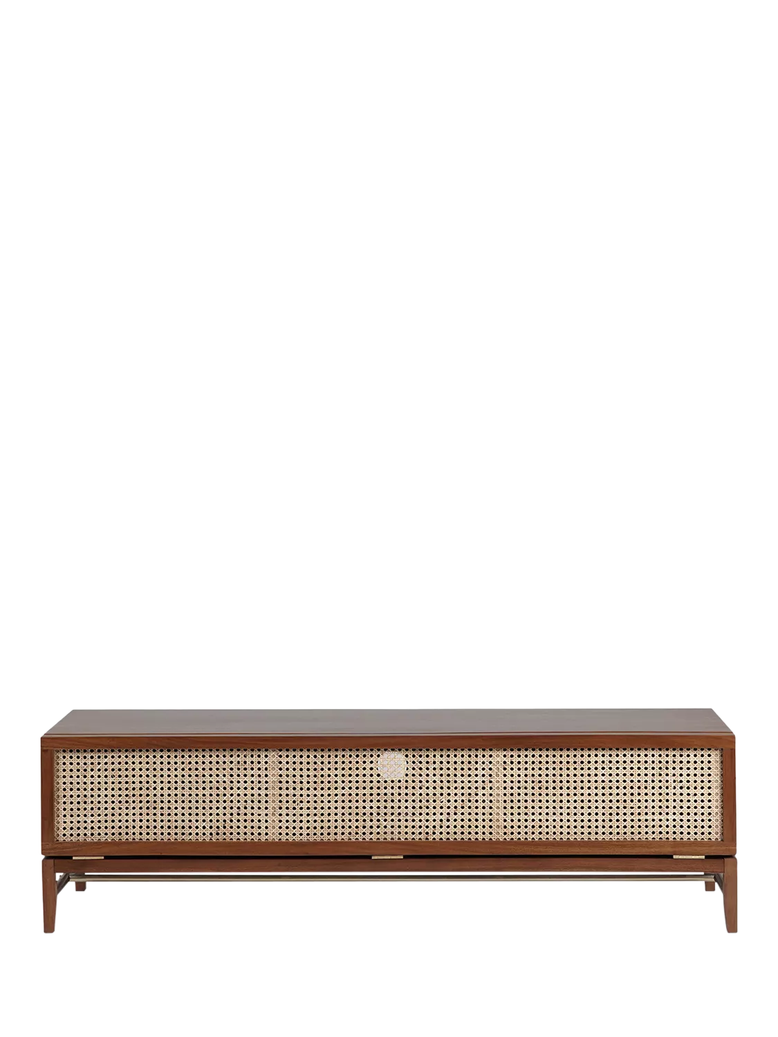 Rattan is very much the star of this show, standing out on vintage 1970s pieces and looking equally striking on this media unit.