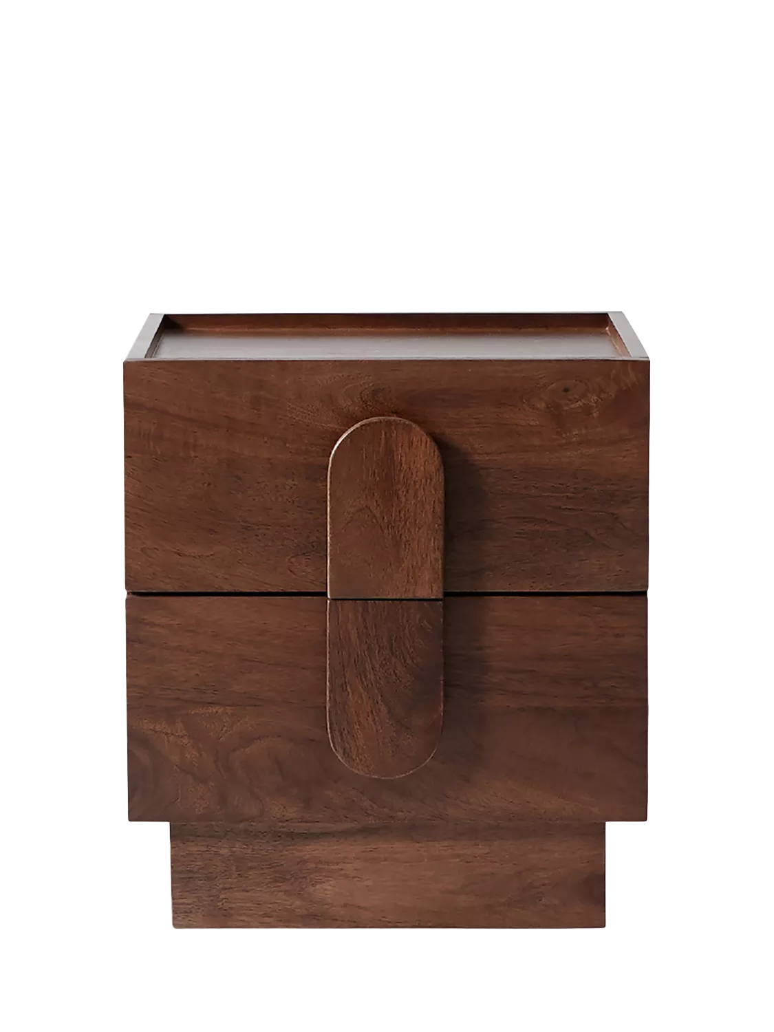 A bold, sculptural design crafted from rich wood, the Rolo bedside table combines style and function with its unique silhouette and smooth drawers. Perfect for adding character to any bedroom.