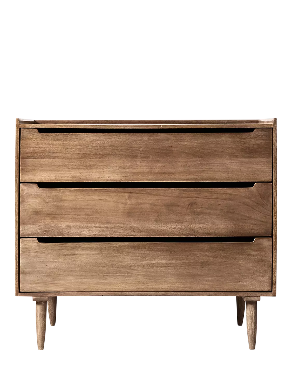 - Mango wood body, drawer fronts and legs, engineered body back panel, drawer bases and boxes