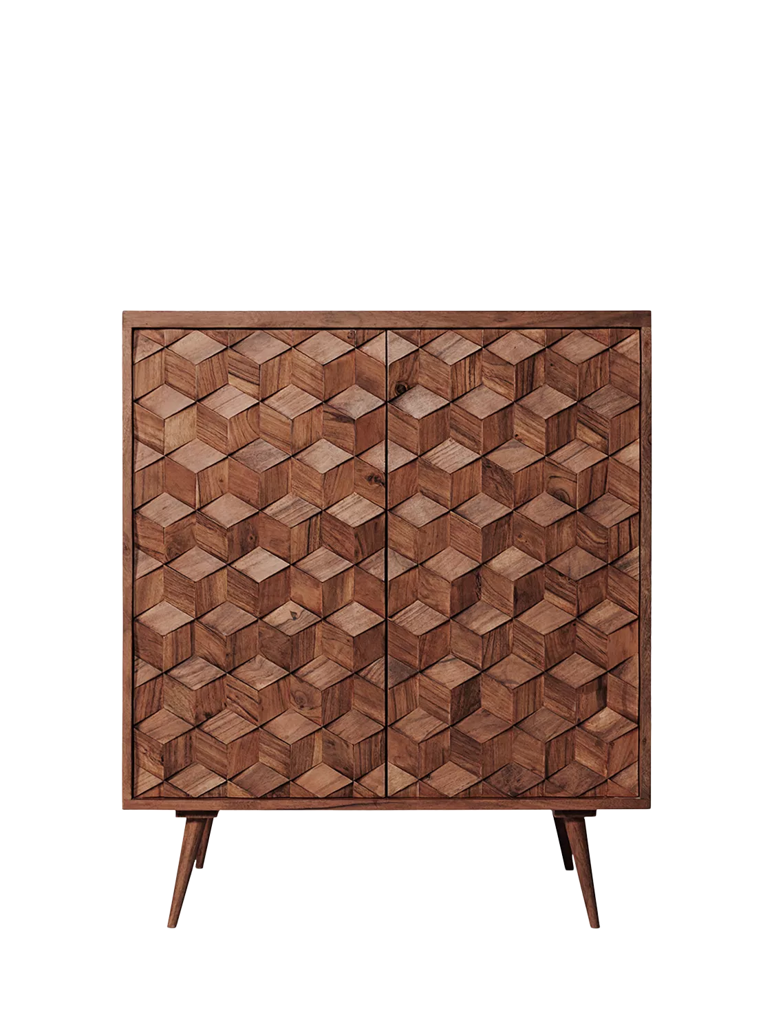 This cabinet is like a Magic Eye puzzle - cubes stand out at you across the drawer fronts, where painstakingly precise tessellated tiles of solid wood actually lie.