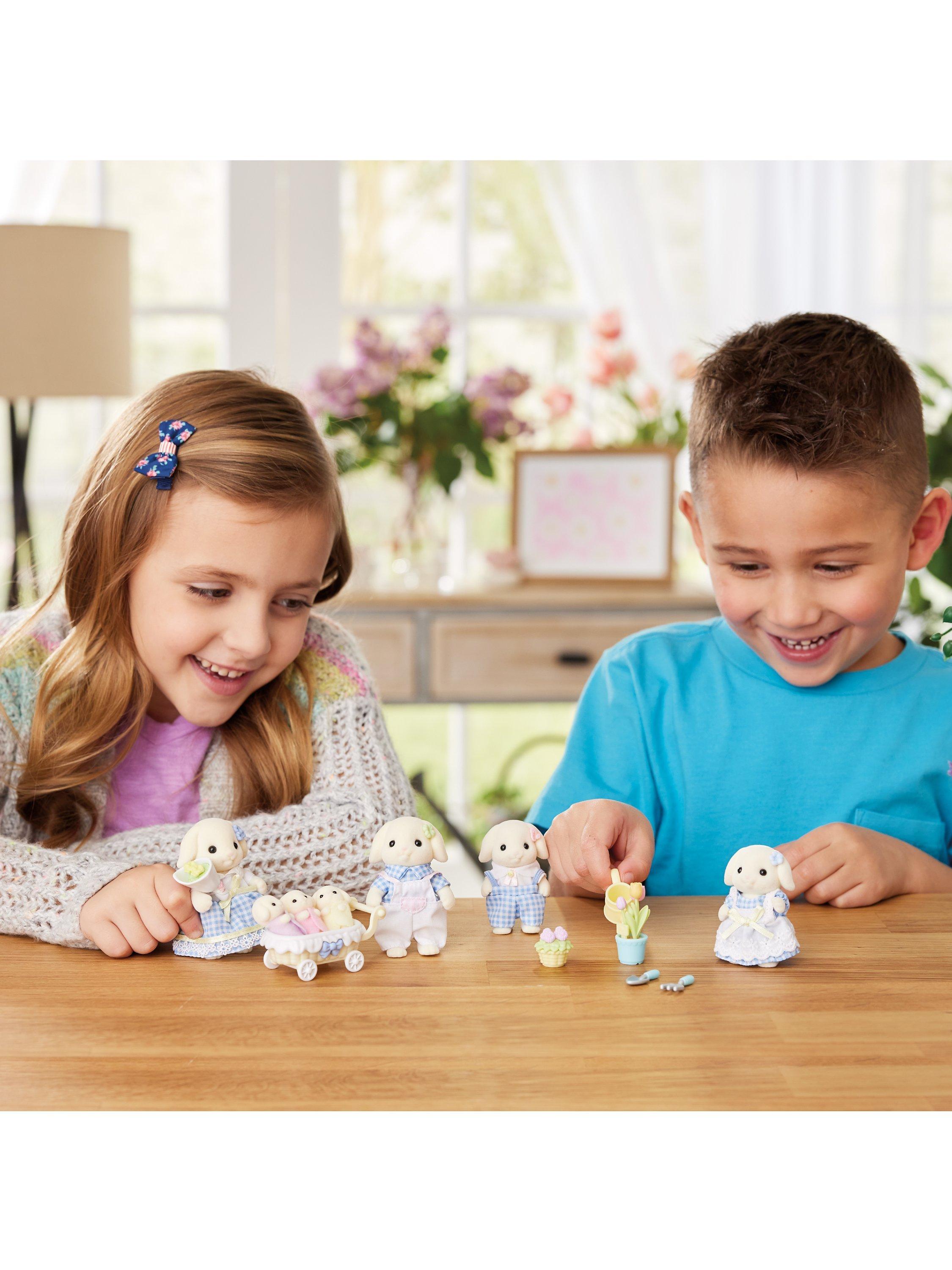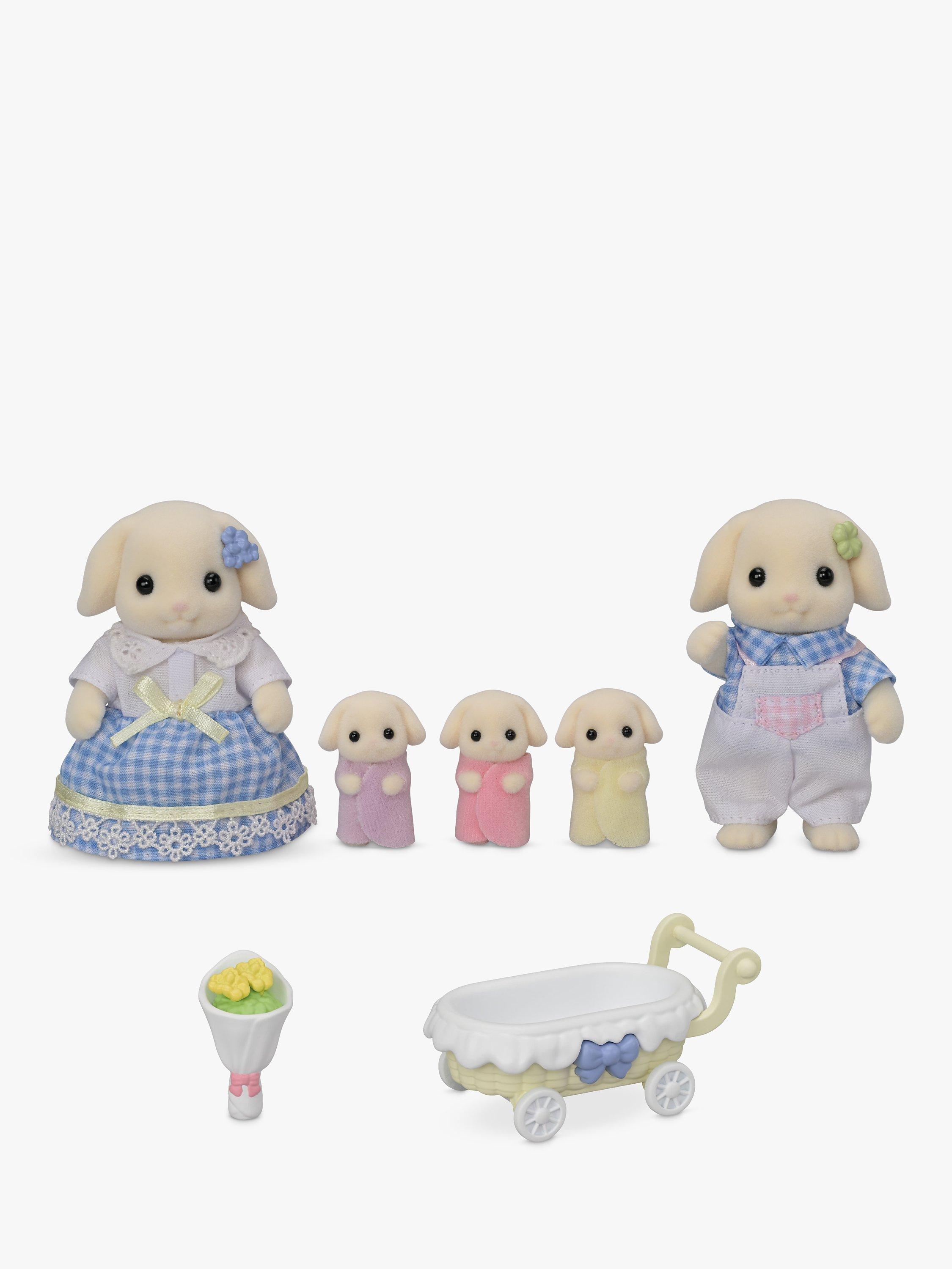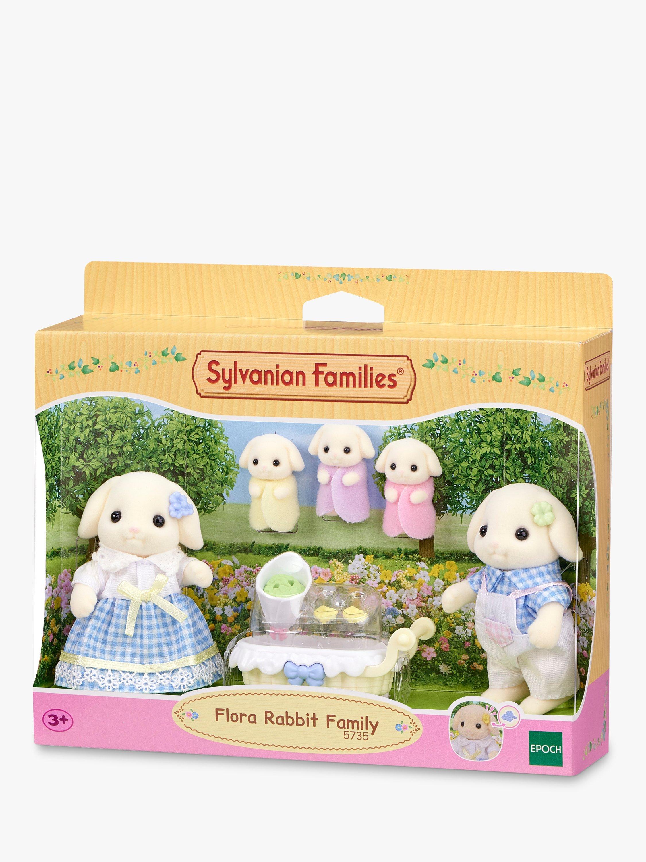 The Flora Rabbit Family have adorable droopy ears and love flowers. This set contains the father, mother, three cradled babies and a variety of accessories.