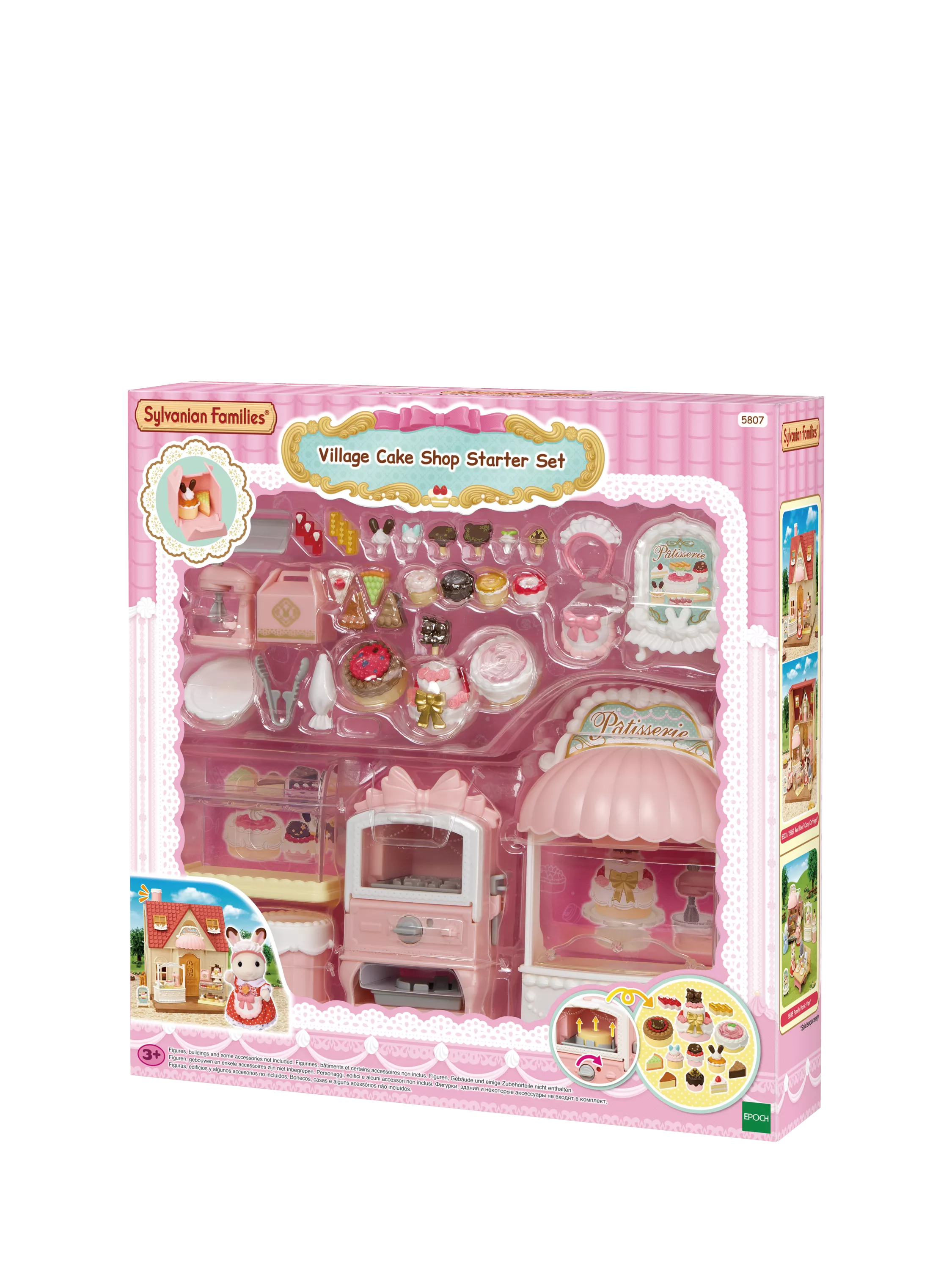 Enjoy playing pretend with this cake shop set that includes an oven that bakes sponge cakes and a variety of cake decorations. Once the sponge cakes are baked, decorate them with cream and toppings to make all kinds of cakes. There are more than 100 different combinations of decorations! Arrange the cakes in the display case and on the display table. Cakes can be picked up with the tongs and placed in a box for the customers to take home. The headband and apron can be placed on other child and adult figures (sold separately).