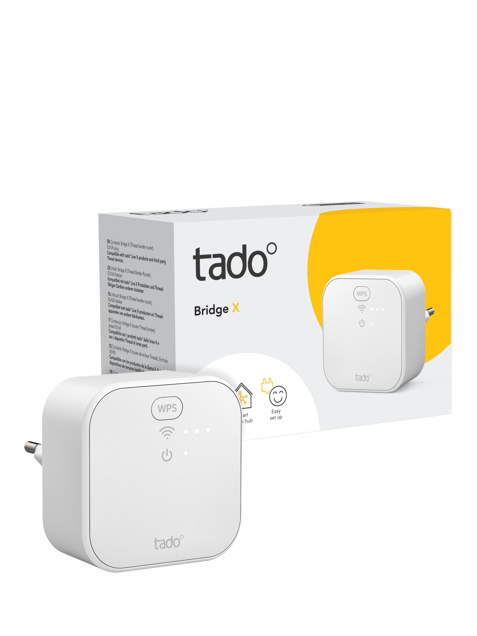 The Bridge X connects all of your tado X products to the internet. You only need one Bridge X per home. If you have a larger home, a second Bridge X can be used as a signal amplifier.