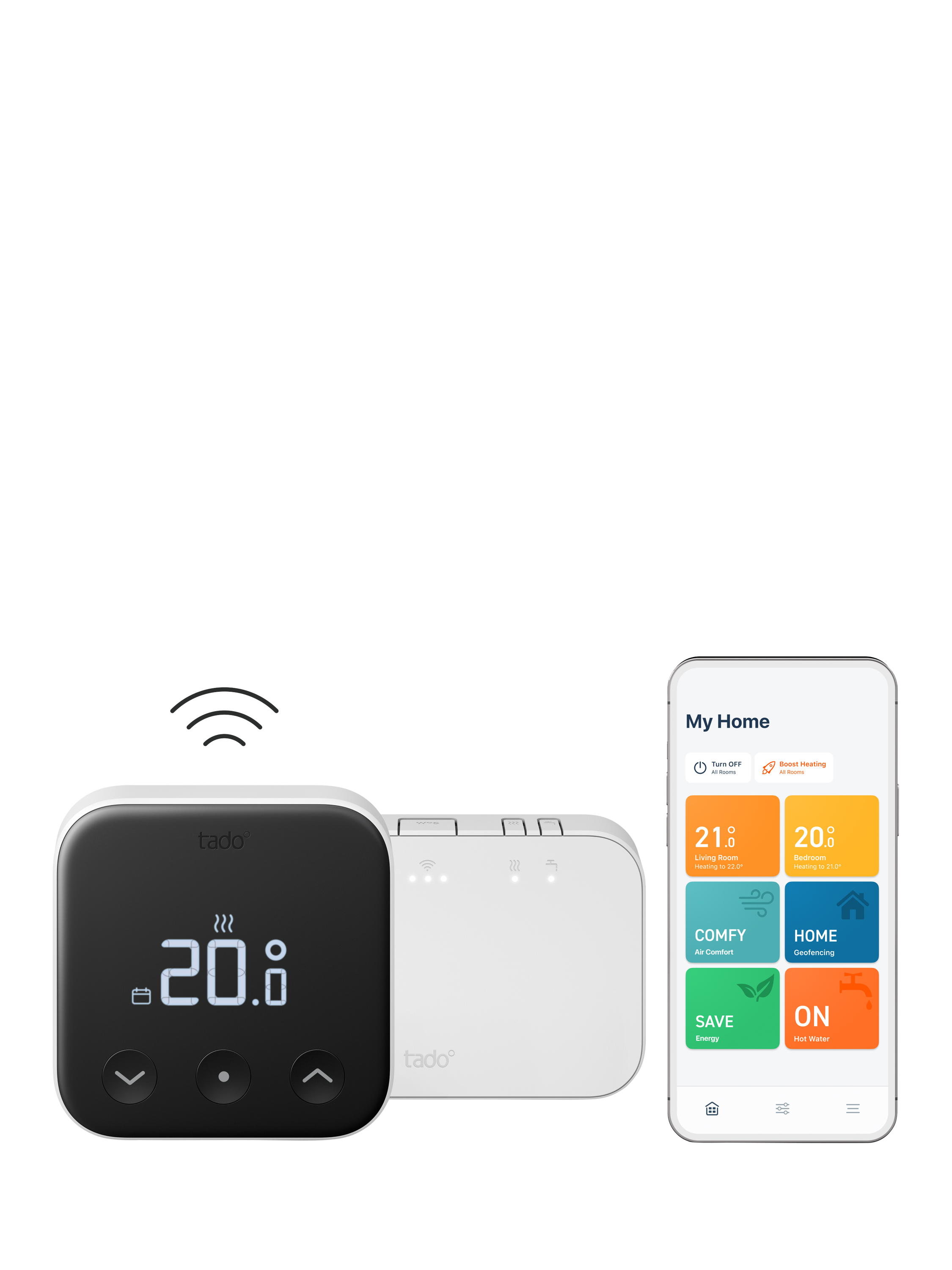 The Wireless Smart Thermostat X lets you control your room temperature and hot water via the tado app, wherever you are. It’s seamlessly integrated via the unified Matter standard and with industry-leading multi-zone control if you install multiple devices.
