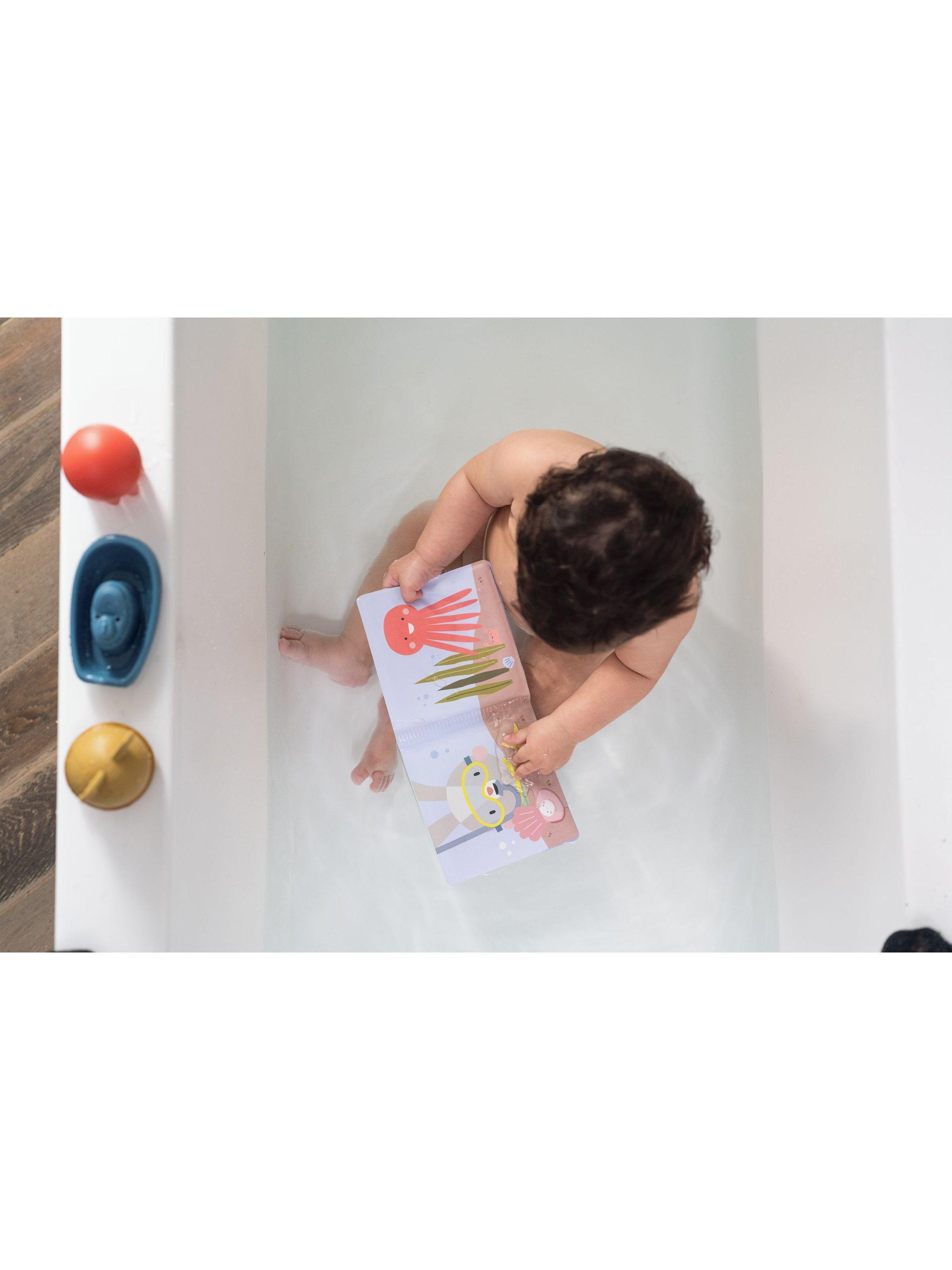 The waterproof bath book reveals vibrant colours when wet, encouraging visual development and cognitive skills. After playtime, snuggle your baby in the soft, absorbent cotton hooded towel to keep them warm and cosy. Complete with two squeaky bath toys and a floating boat, this kit makes bath time a sensory delight. Babies can squeeze, grasp, and splash their way to improved motor skills while having endless fun.