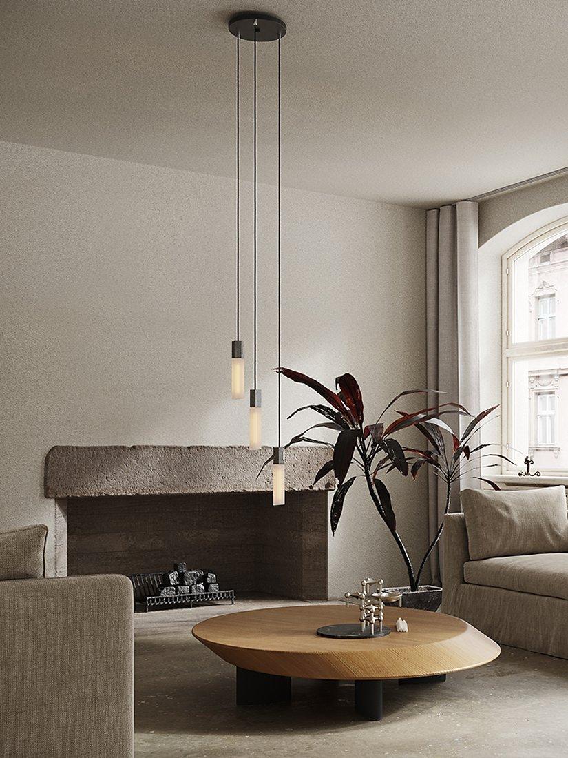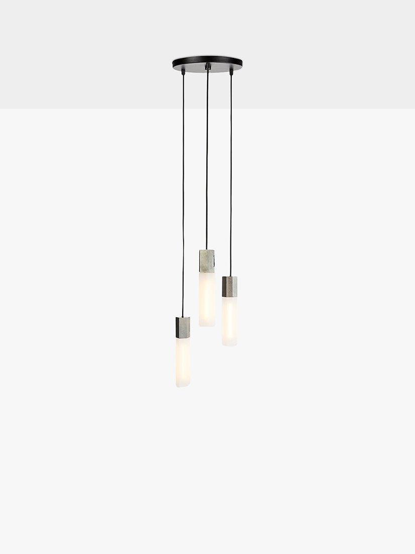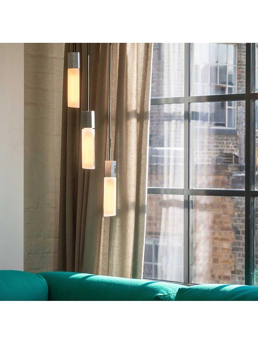 This cluster of pendants from Tala will make a dramatic lighting feature in your home. Cut in an irregular hexagonal shape, each pendant fuses textured and polished metal finishes with a translucent, mouth-blown borosilicate glass shade. Together, this luxury combination of materials reflects the natural processes that inspired the light's design. It's equipped with energy-efficient LED technology, allowing you to dim the light intensity to suit your preference. And, each of the three pendants are height adjustable, allowing for perfect positioning in your space.