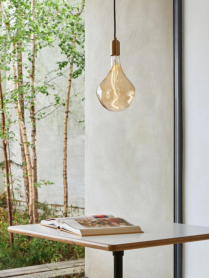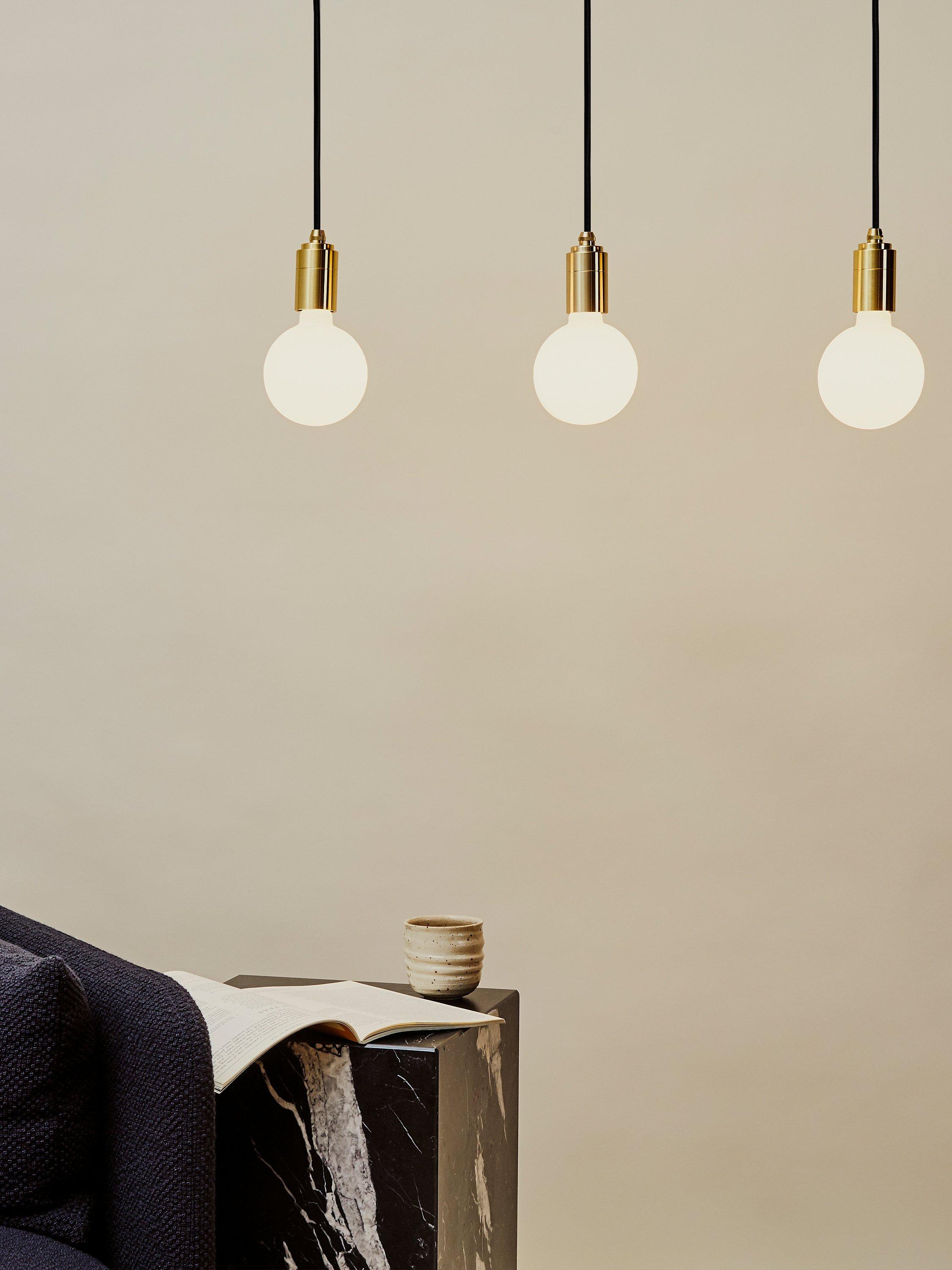 This turned brass pendant cord from Tala offers a sleek and minimalist home lighting fixture. Designed to complement their statement LED lightbulbs, it's ideal for modern settings and the black threaded cord can be adjusted to your exact requirements.