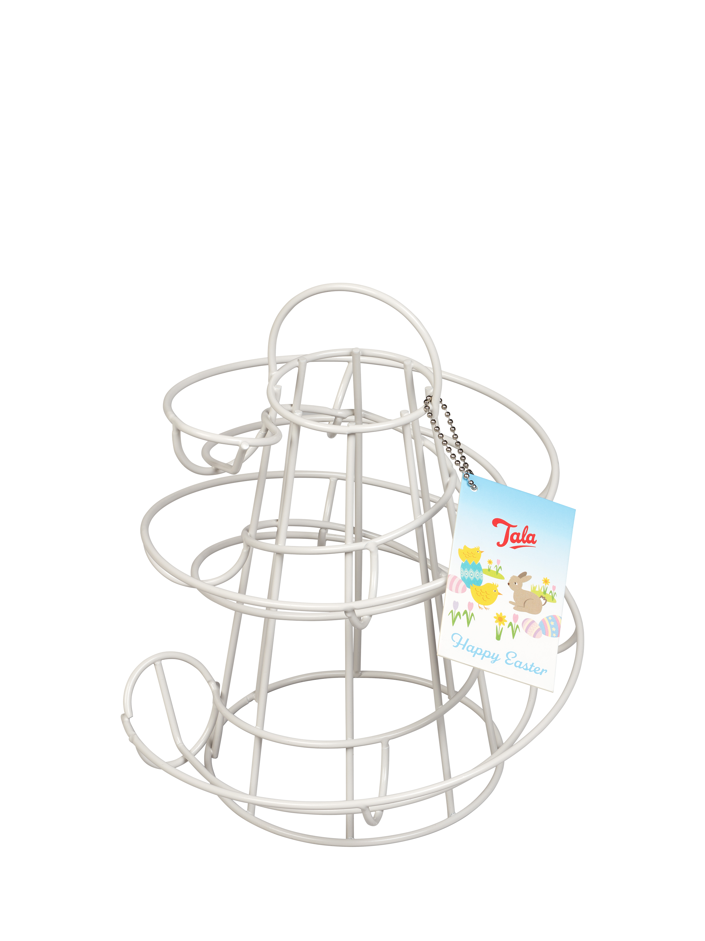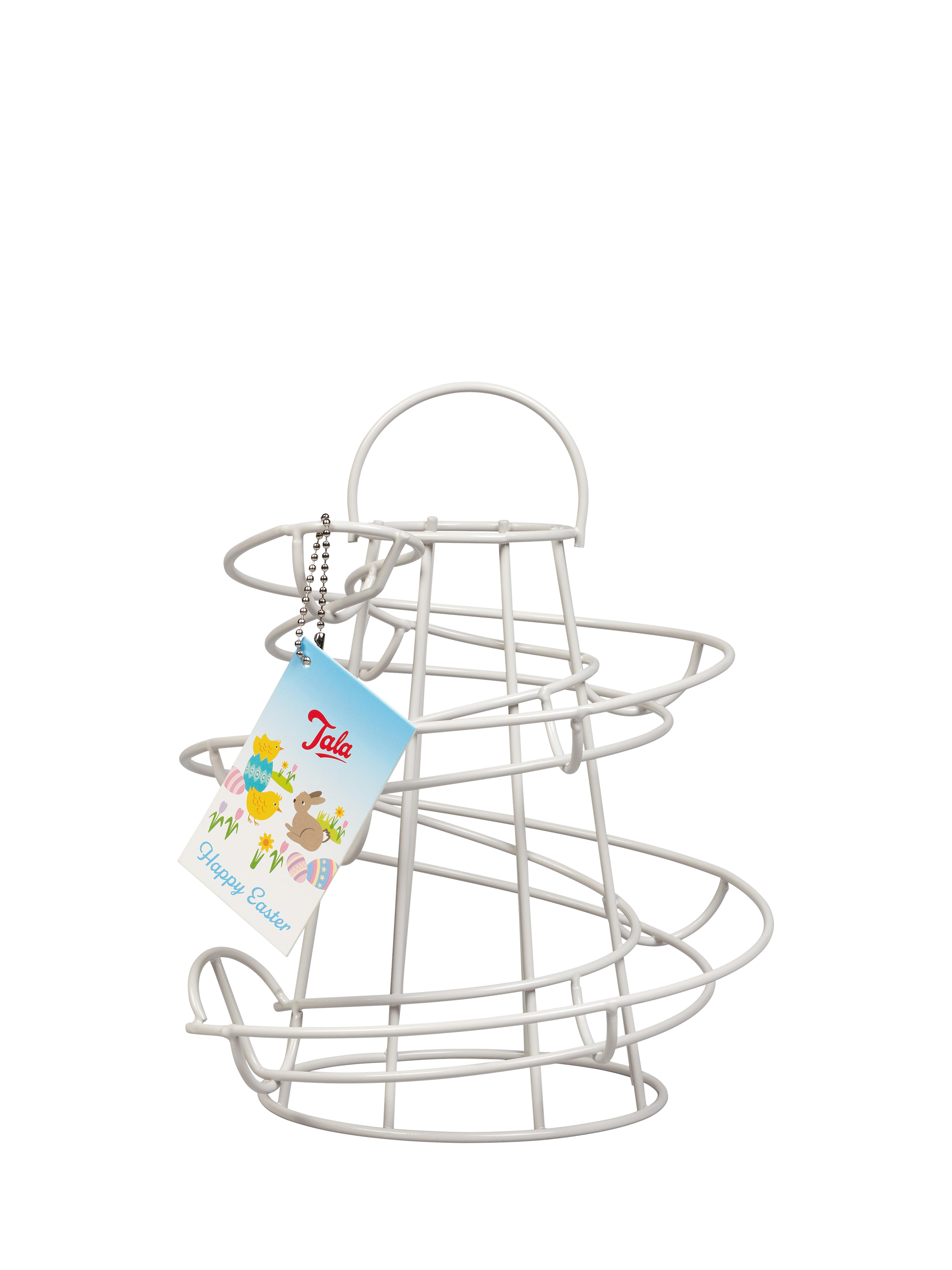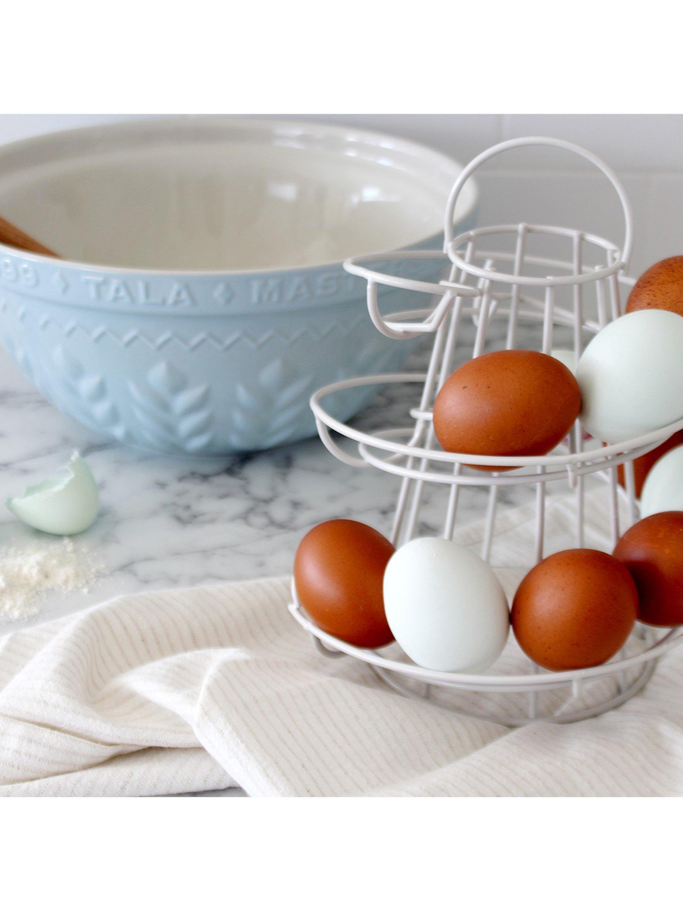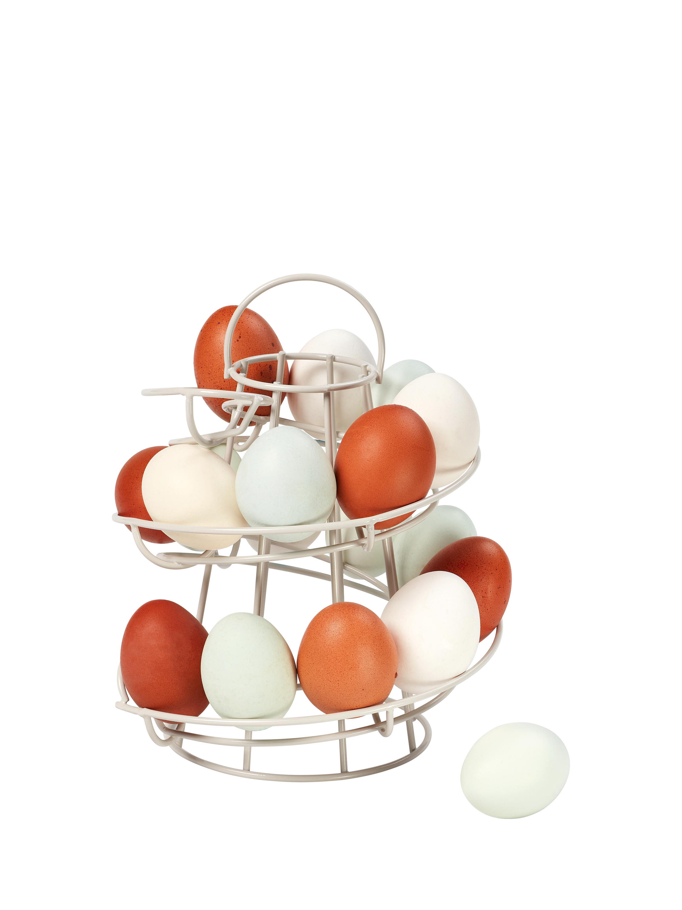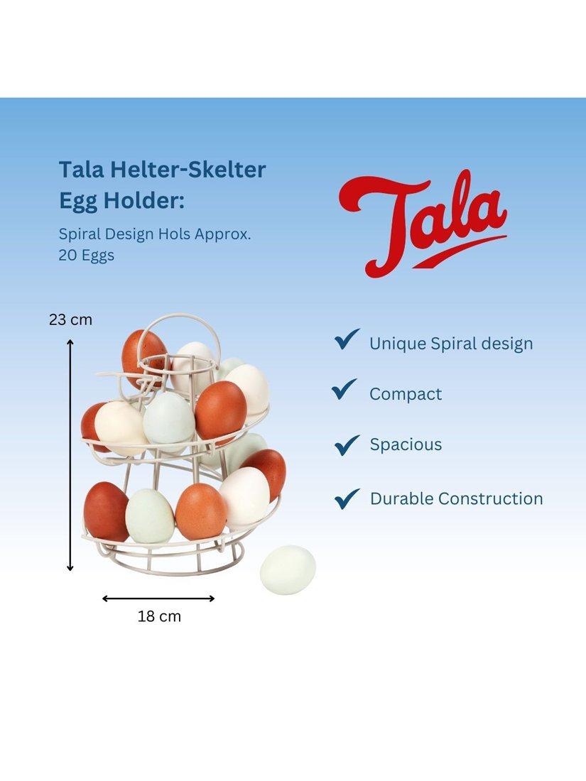 The Tala Helter Skelter Egg Holder is ideal for displaying up to 20 eggs in any kitchen. Simply take the next available egg from the bottom, and the remaining eggs will roll down without breaking. Eggs are best stored at room temperature.