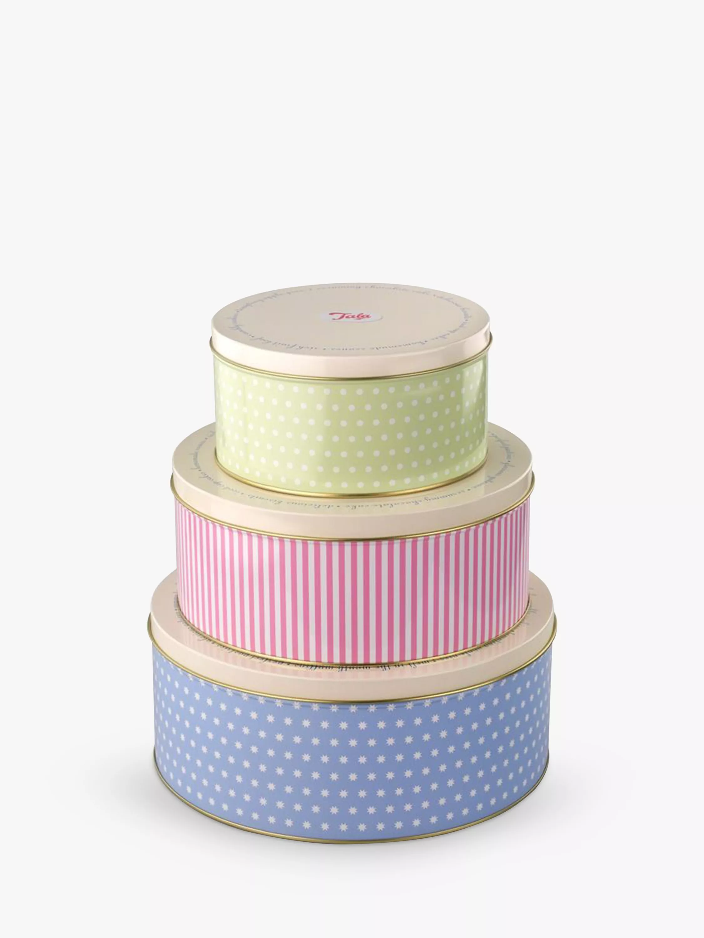 These three Tala tins are perfect for transporting and storing any bakes from biscuits to cakes, from cupcakes to tray bakes, and in a safe and dry environment. In three different classic patterns and colours, they nest together for compact storage.