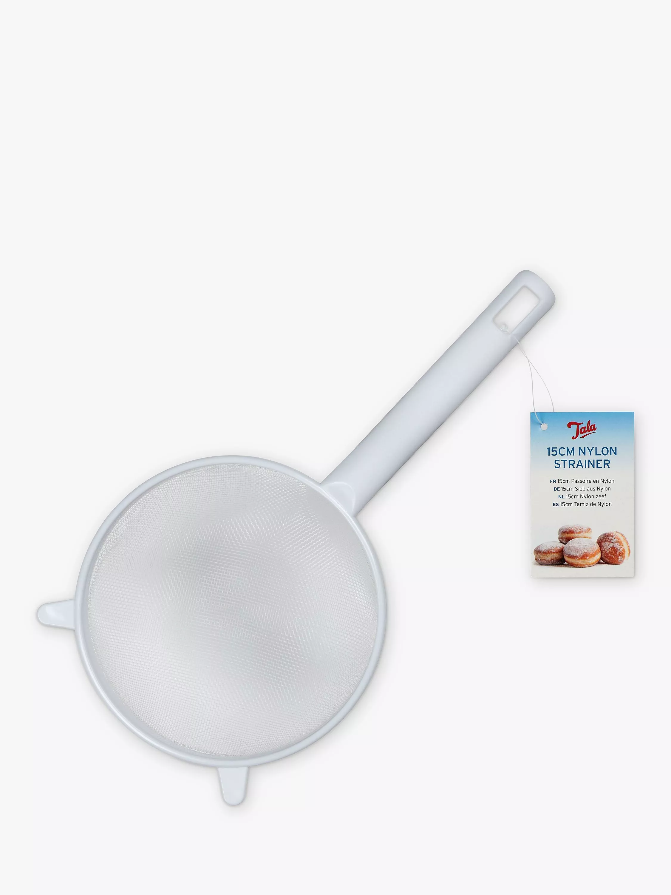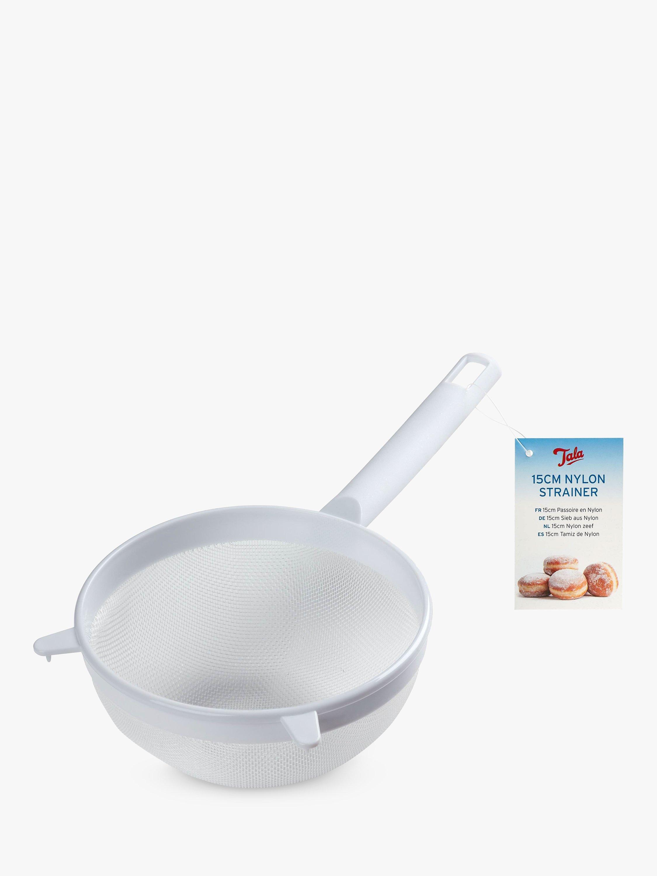 Ideal for sifting flour and icing sugar, this Tala sieve can also strain sauces to ensure they're free of lumps. In small quantities, the sieve can be used for washing rice, rinsing pasta and straining canned goods. It's designed to rest over a saucepan or bowl and comes with a hanging loop for easy storage. Made of nylon, it's dishwasher-safe for easy cleaning.