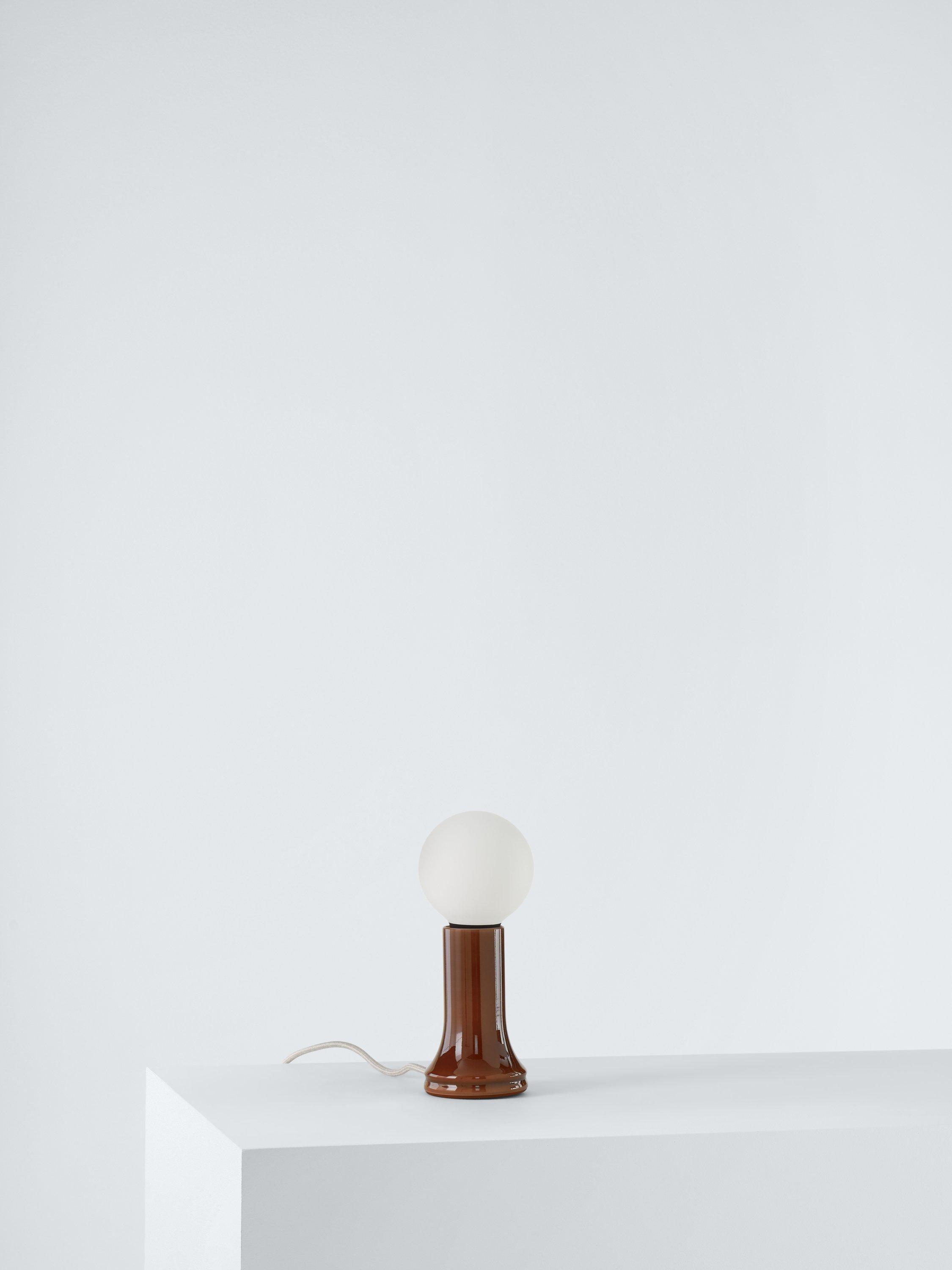 The Shore table lamp is an elegant light from Tala, mouth-blown and paired with a spherical matte white bulb. The in-line dimmer offers unrivalled dim to warm technology.