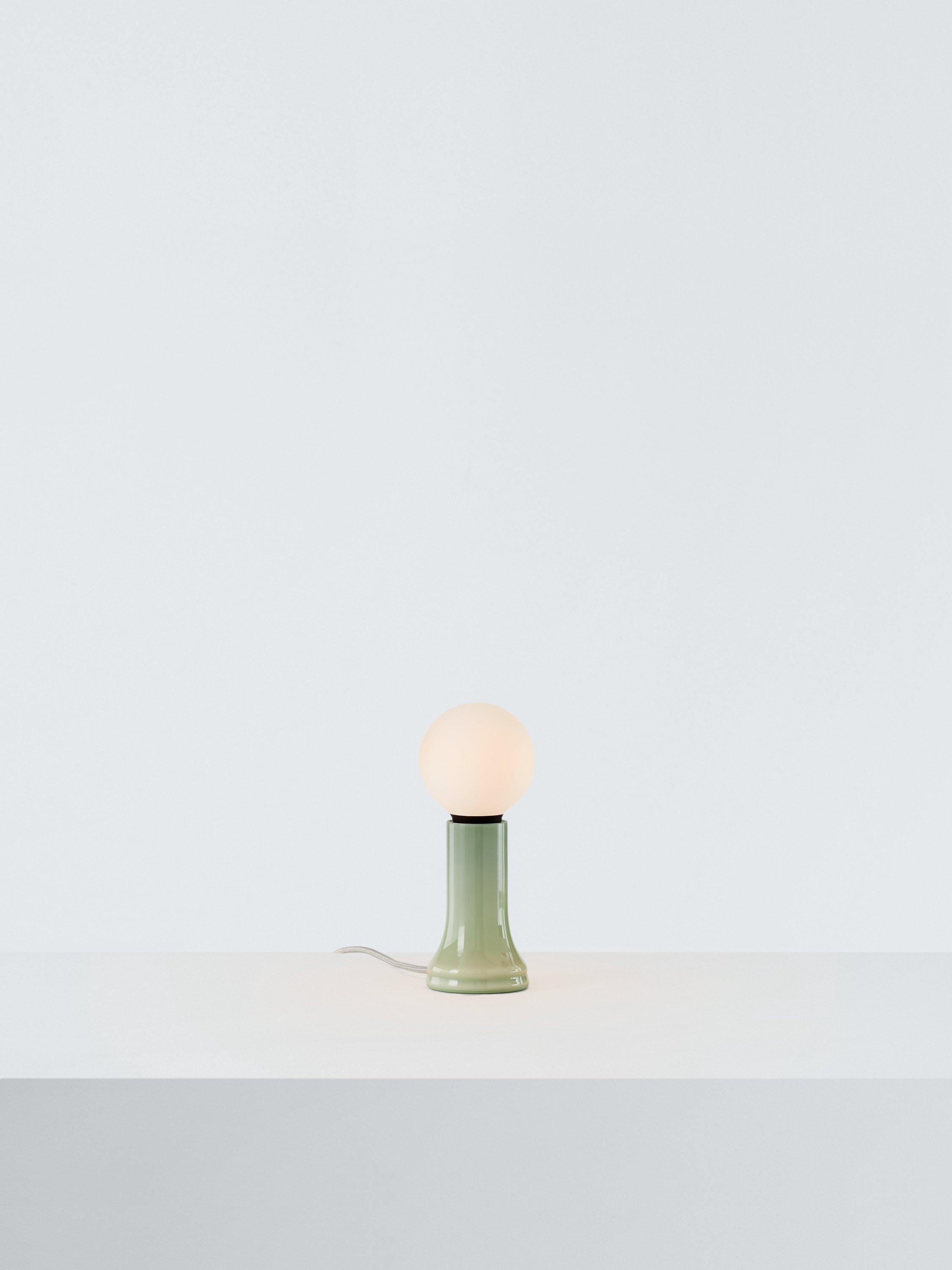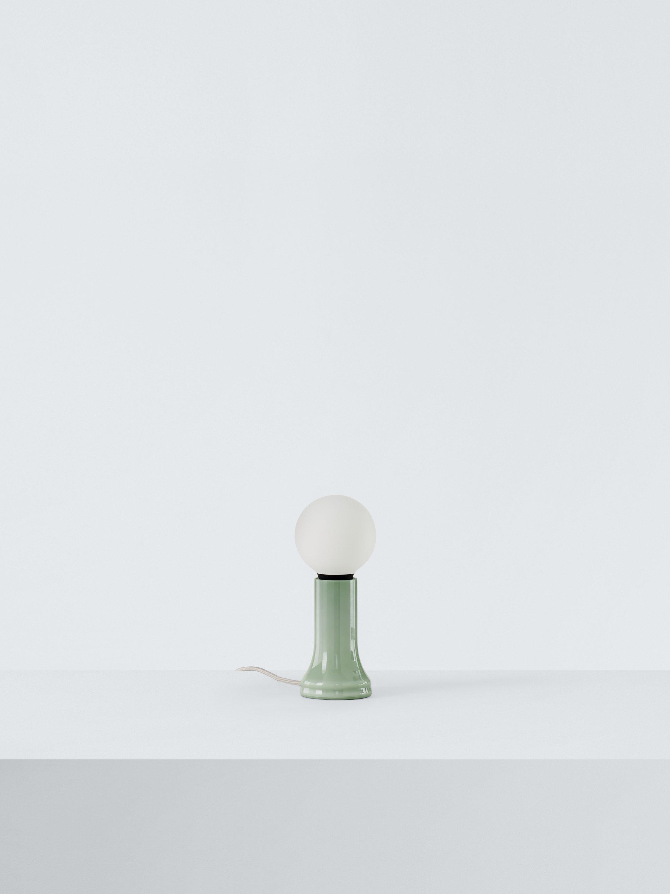 The Shore table lamp is an elegant light from Tala, mouth-blown and paired with a spherical matte white bulb. The in-line dimmer offers unrivalled dim to warm technology.