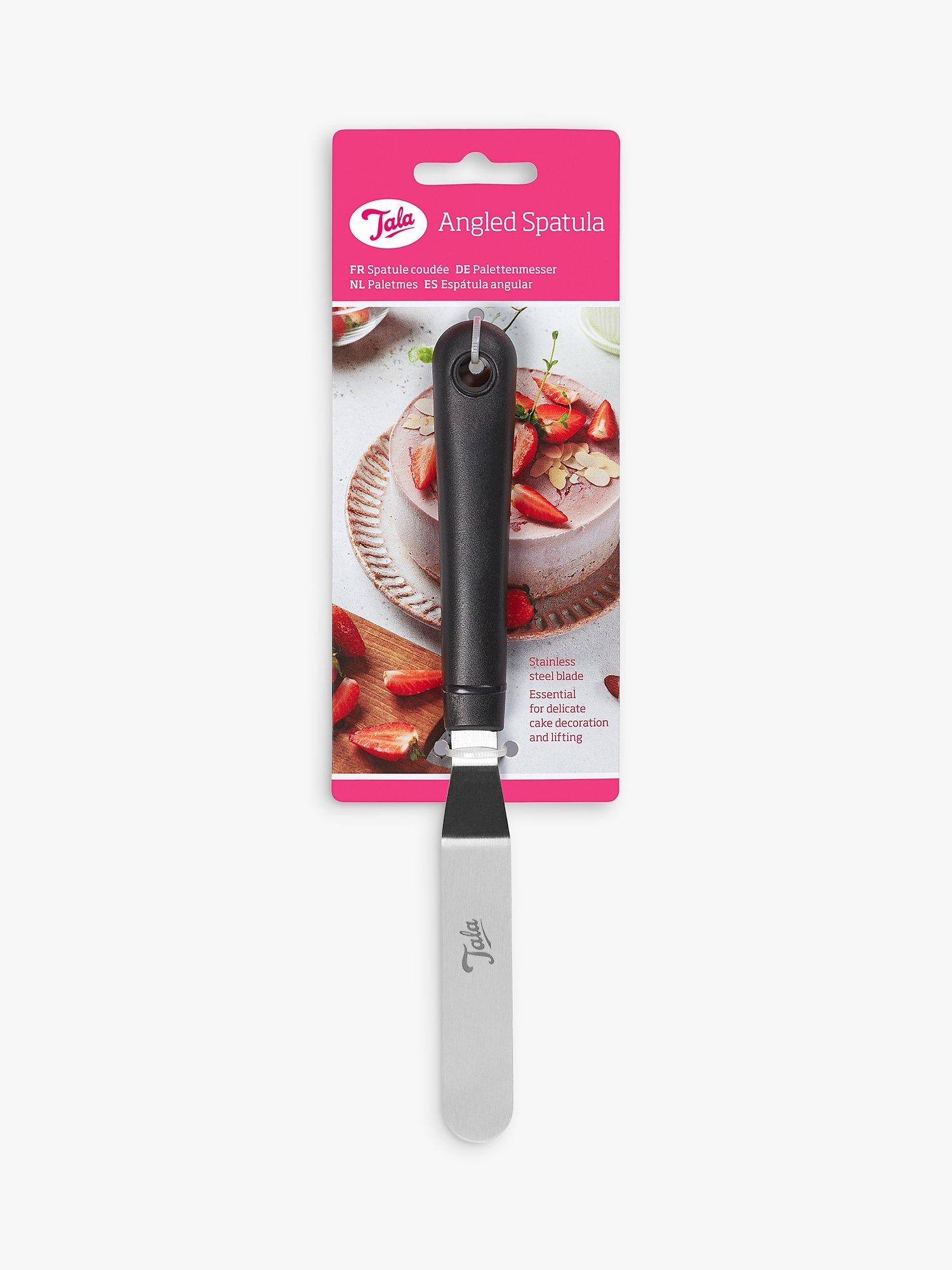 Small, sturdy and dishwasher safe, this angled spatula from Tala is perfect for creating a beautiful finish to cupcakes, sponges and sandwiches. Ideal for smoothing and handling delicate cake decorations, it can also be used for lifting your cakes and decorations. The flexible stainless steel blade glides over icing.
