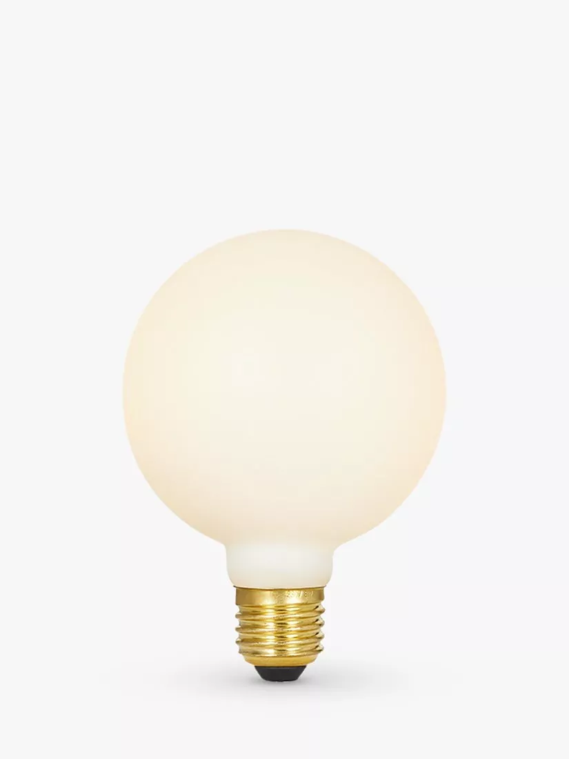 Experience the benefits of good quality light with Tala's Sphere range. This innovative LED bulb achieves smooth, flicker-free dim to warm light. The soda-lime glass shade has a matt finish and standard edison screw brass base cap. This 7W E27 globe bulb can be paired with any dimmable fixture.