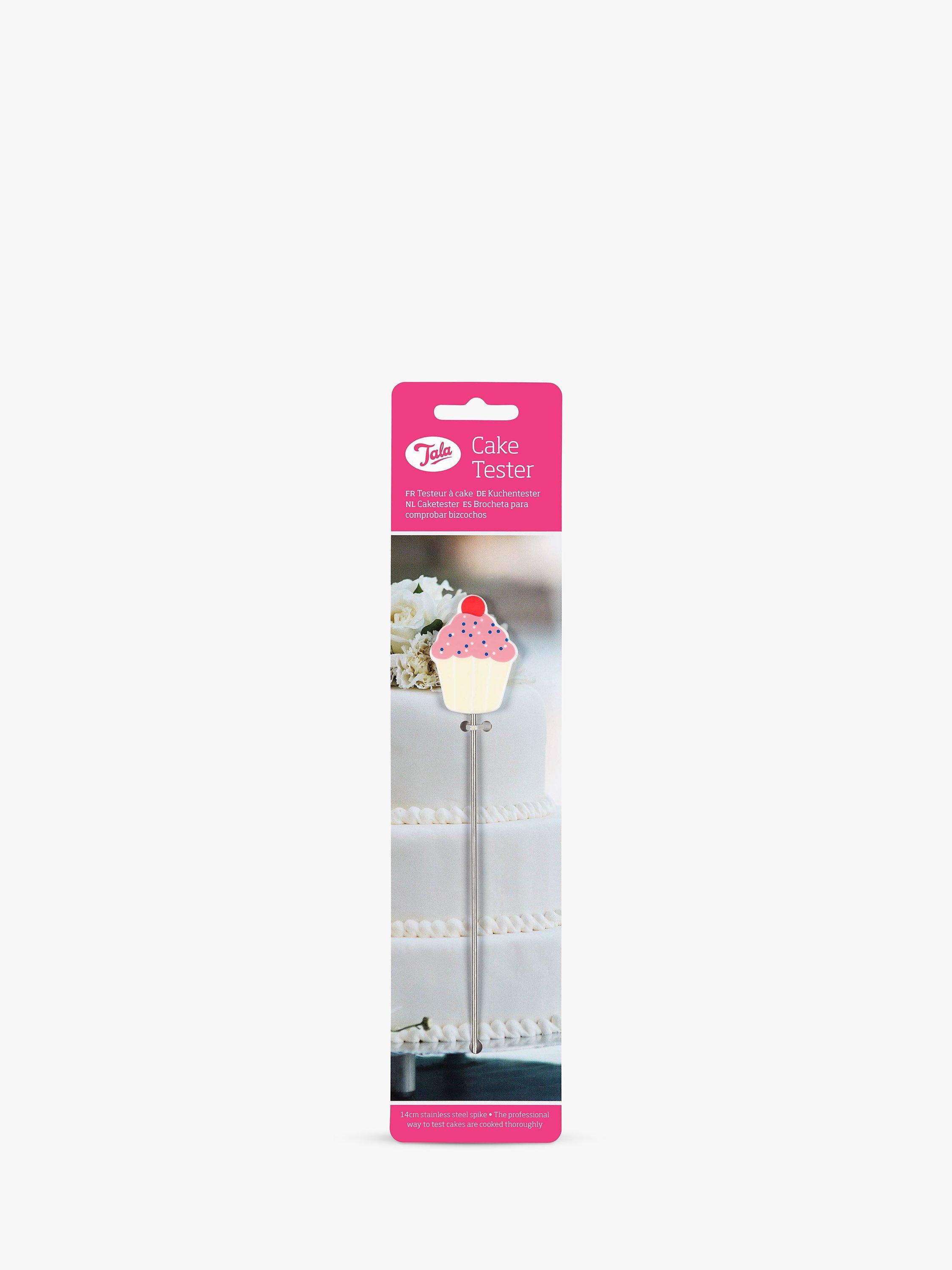 The Tala Cake Tester is a professional way to test cakes are cooked thoroughly with a 14cm stainless steel spike to insert into any sponges or showstoppers. Topped with a pink cupcake, this cake tester is easy to find amongst baking utensils.