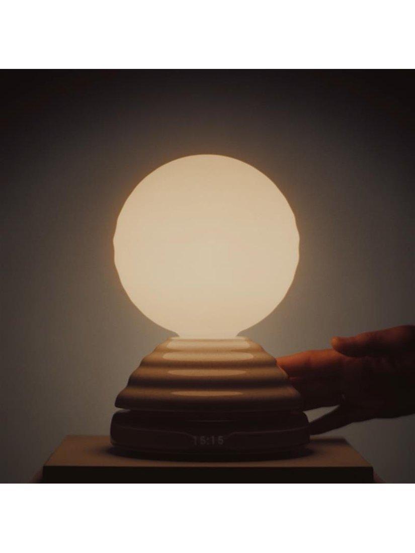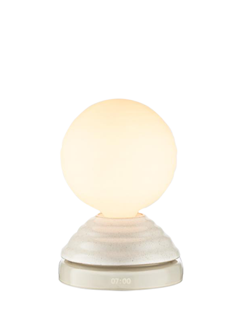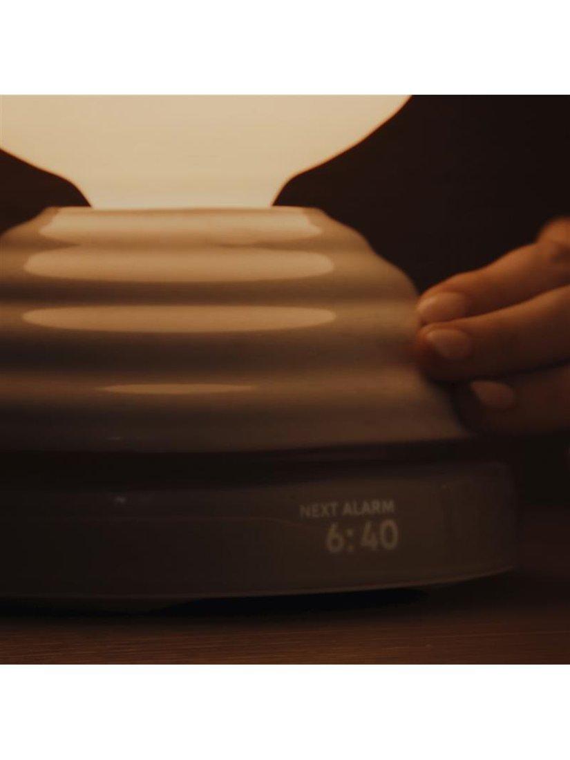 The Wake lamp is tuned to promote better rest and clearer mornings. Created in collaboration with Thomas Heatherwick, Wake is crafted with enduring materials and inspired by nature's rhythms. Begin each day with a gentle symphony of light and sound, and unwind each evening with a calming, warm glow.