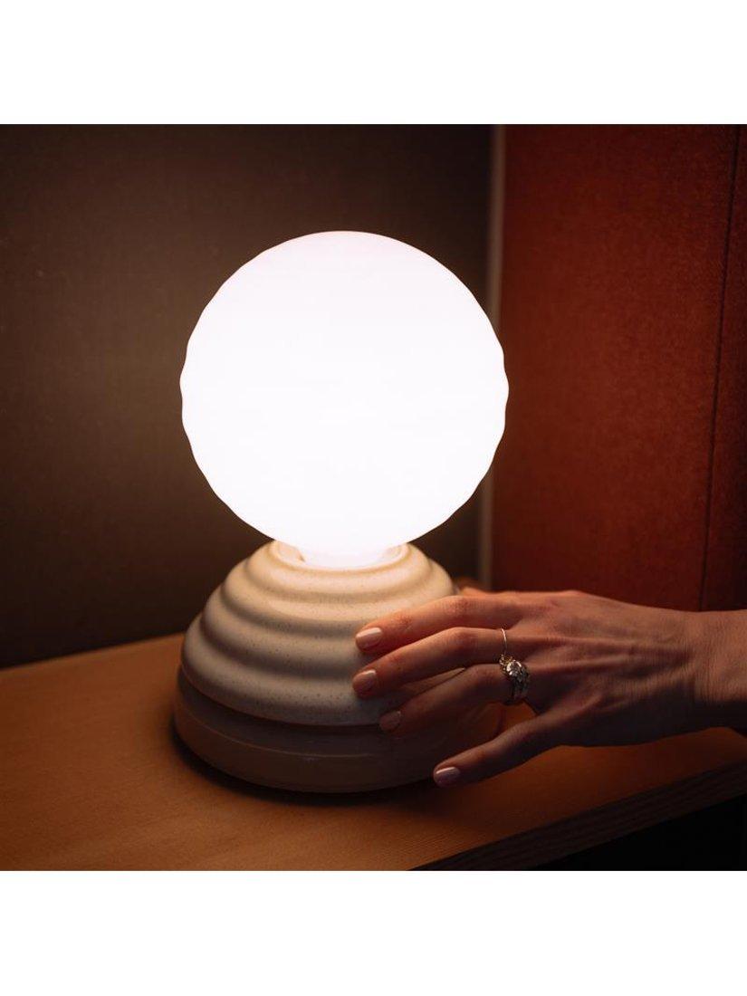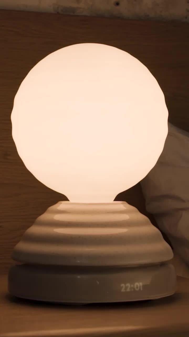 Includes four wake-up sounds and seven sleep sounds to choose from. Seamlessly integrates with Google Home and Amazon Alexa for voice-controlled operation. The custom, rippled LED bulb goes from dim to a warm light to suit your mood.