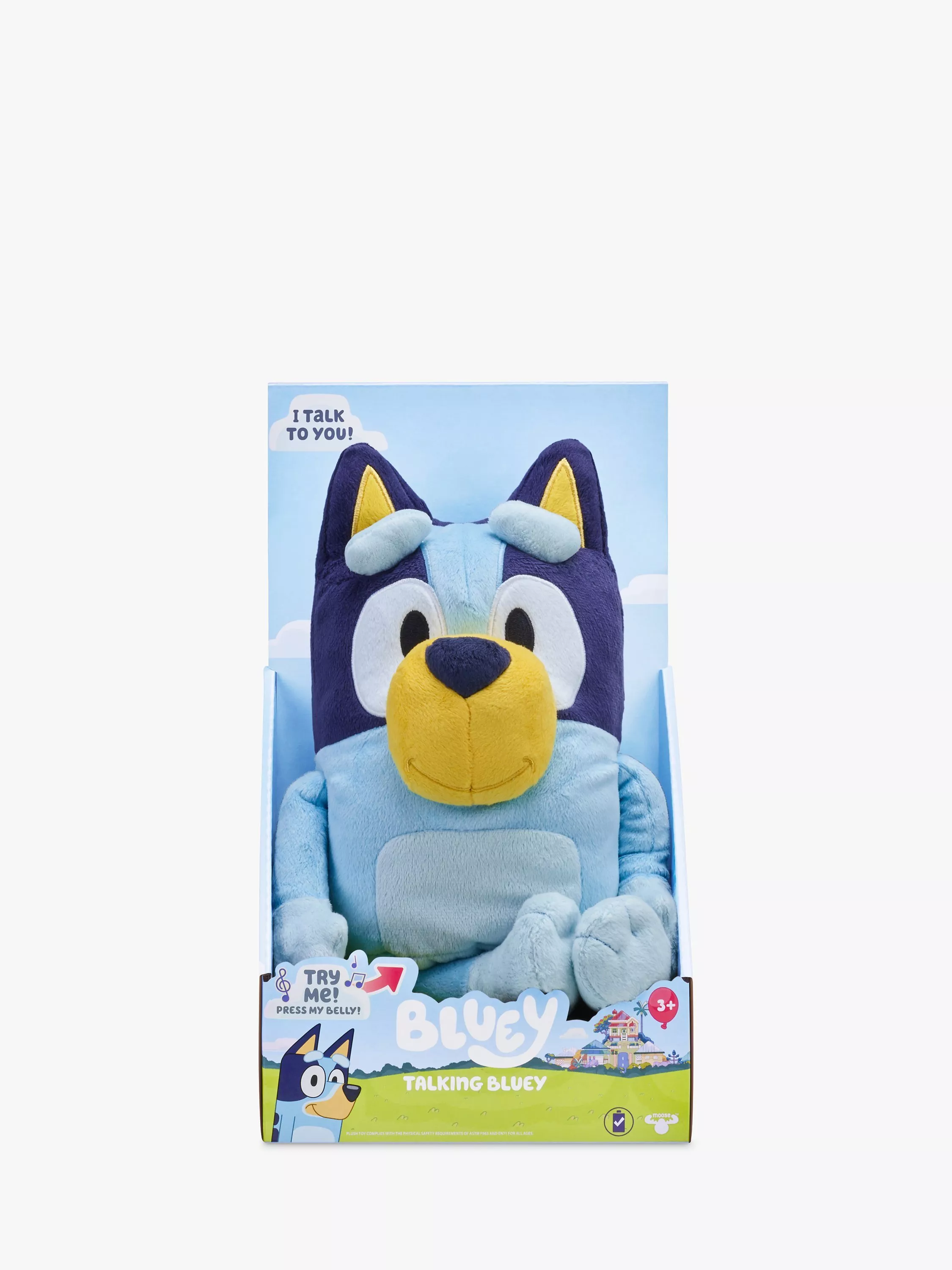 Bring the fun and imaginative play of Bluey home with the Talking Bluey 33cm plush toy.