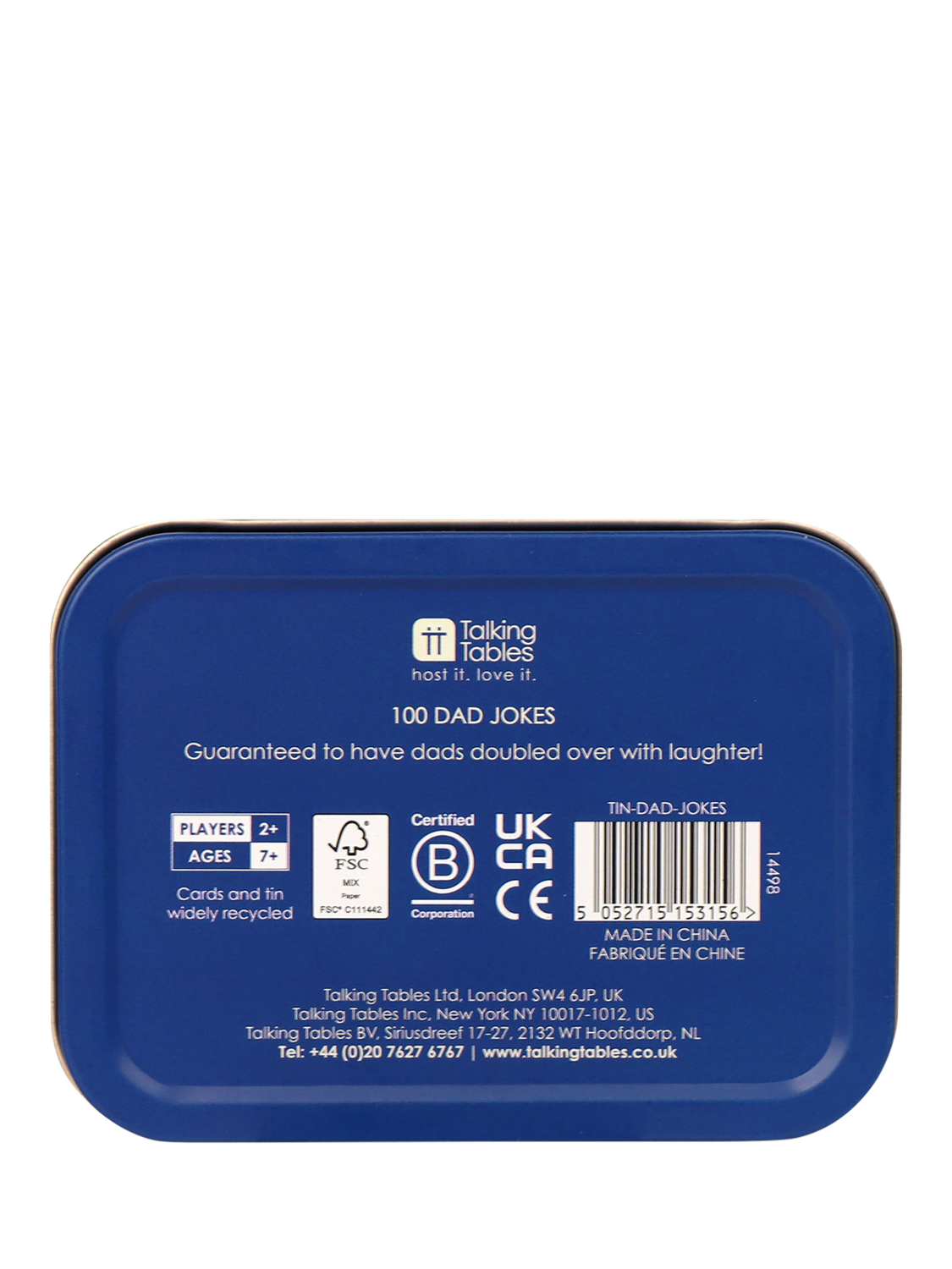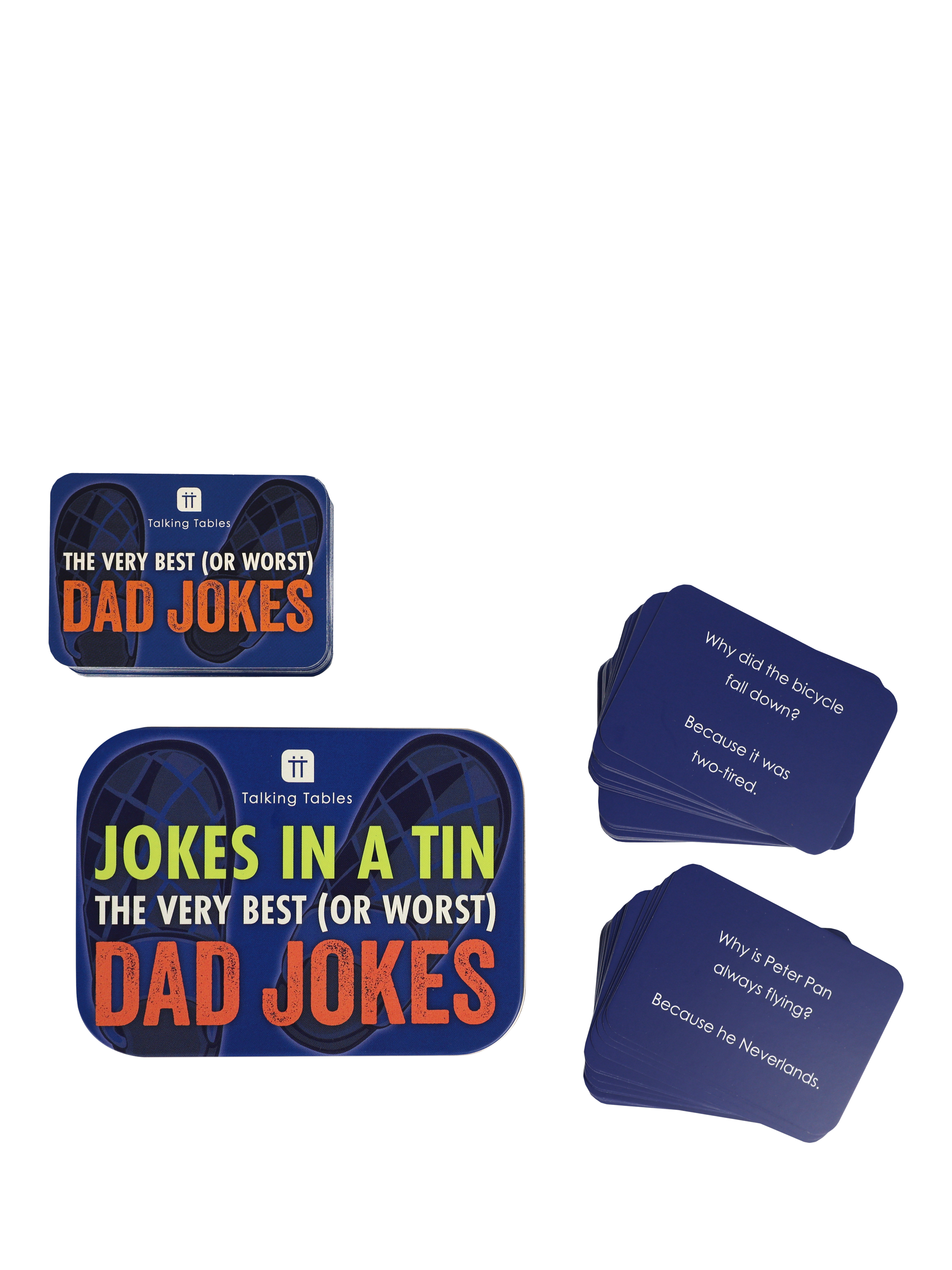 This tin contains 100 jokes guaranteed to have dads doubled over with laughter!
