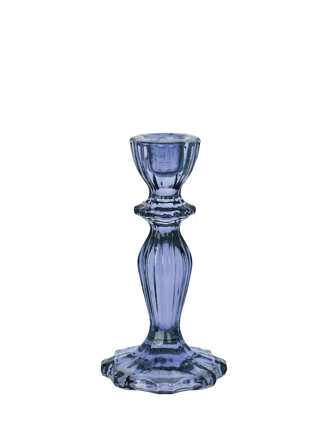 Make it dark and stormy with this navy blue glass candlestick holder. Use it to add a touch of sophistication to your dinner table and add a neat upright edge to your setting. It looks particularly eye-catching with a traditional white candle to contrast against its dark hues. Holds a 2cm candle in depth and width.