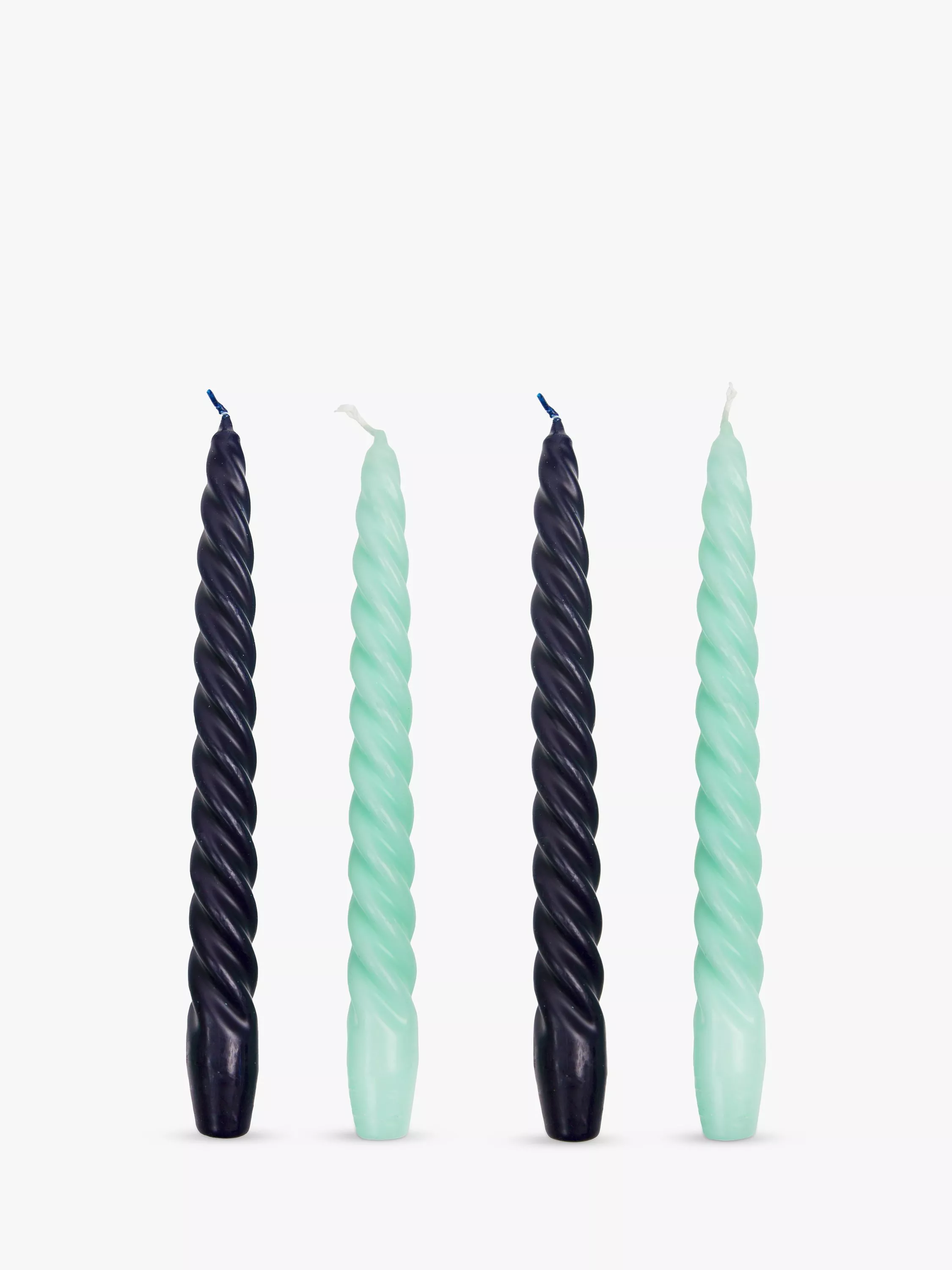 In pretty shades, these spiral candles will set the mood and add a touch of ambience to any room. Each pack contains 4 twisted candles in 2 different colours, ideal for making a statement table decoration or using individually for a more subtle touch on a mantelpiece or windowsill. Each coloured candlestick has a burn time of up to 6 hours - perfect for illuminating a room long into the evening.