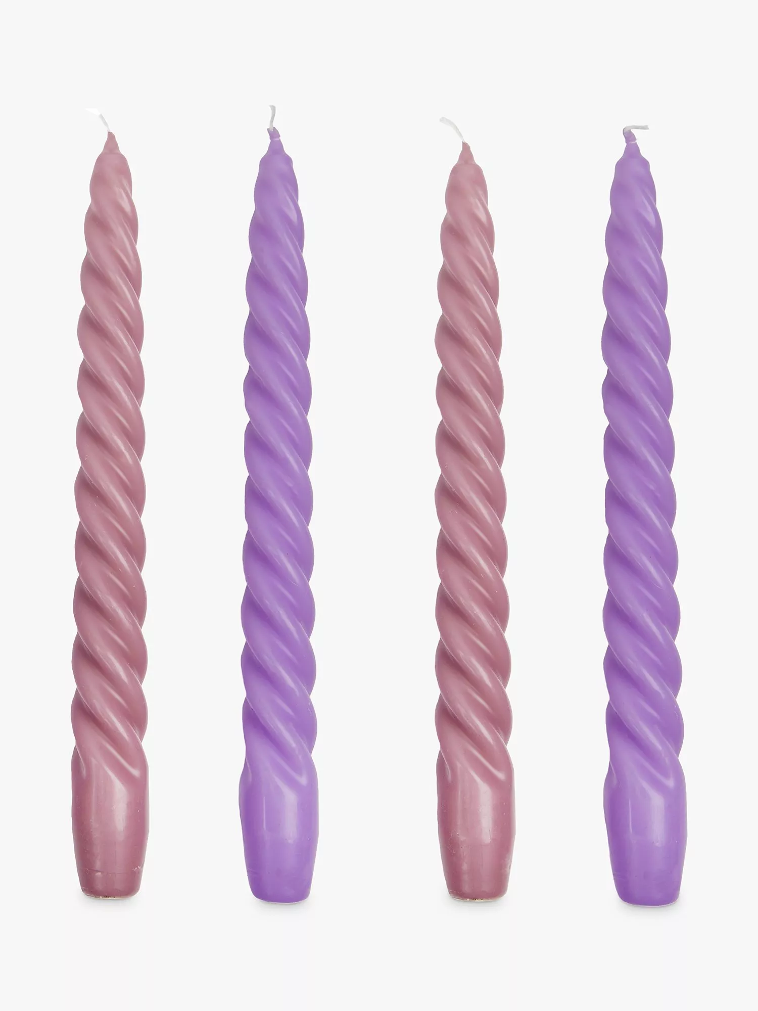 In pretty shades, these spiral candles will set the mood and add a touch of ambience to any room. Each pack contains 4 twisted candles in 2 different colours, ideal for making a statement table decoration or using individually for a more subtle touch on a mantelpiece or windowsill. Each coloured candlestick has a burn time of up to 6 hours - perfect for illuminating a room long into the evening.
