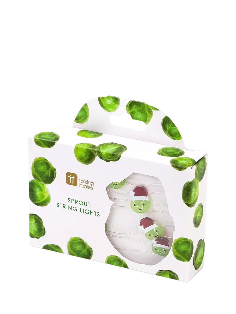 String up the sprouts, these battery operated festive sprout string lights by Talking Tables are 3m long, featuring 30 LED lights with Santa hats!