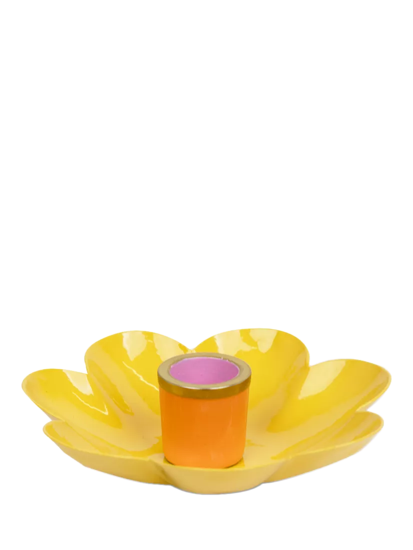 Cheerful and colourful, these enamel flower-shaped candle holders add a bright accent to any home or table display. Crafted from powder-coated metal with a high-gloss enamel finish, each holder has a rich, premium look that enhances the vibrancy of its colour.