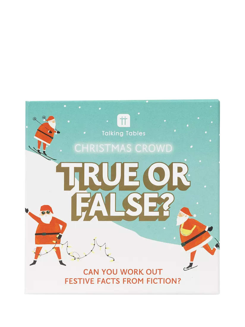 In this quickfire Christmas True or False Game players must hold up a miniature paddle with either ‘True’ or ‘False’ in response to festive-themed questions. The person who gets the most answers right wins. Fastest arm first.