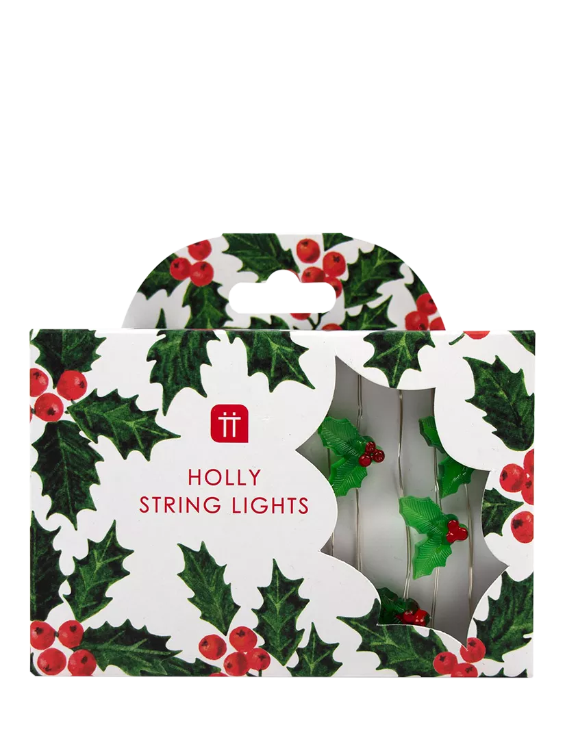 Adorned with twinkly holly shaped LED lights in traditional colours of red and green, and measuring over 2 meters long, these Holly Christmas String Lights will lend a dash of sparkle to your festive décor.