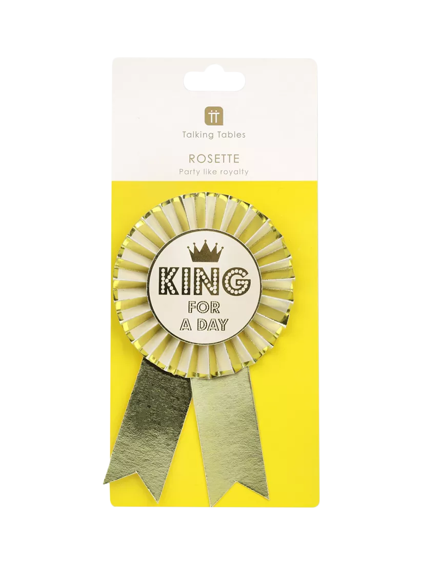 On birthdays or Father's Day, let everyone know you're the king with this fun, gold rosette.