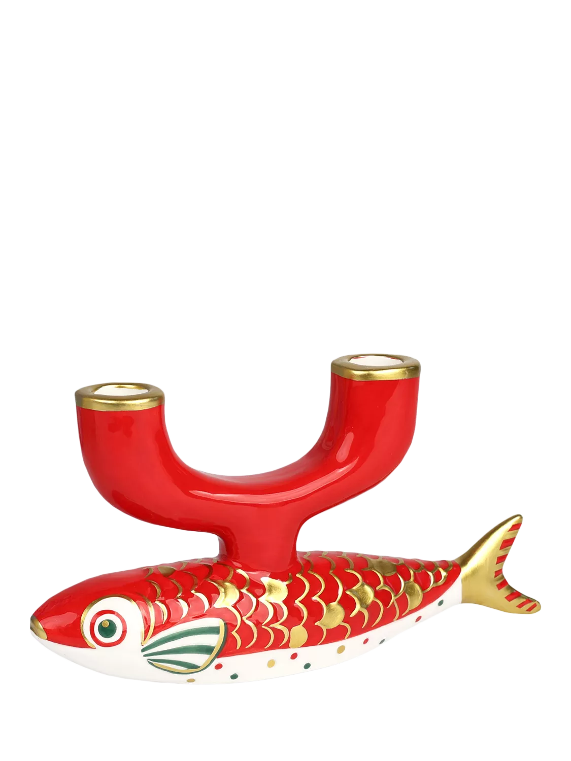 Add a splash of character to your table décor with the Koi Fish Ceramic Candle Holder. Featuring a red sculptural koi fish shape and soft gold detailing, this unique piece brings playful elegance to any setting. Designed to hold a standard dinner candle, it’s ideal for creating conversation-starting centrepieces.